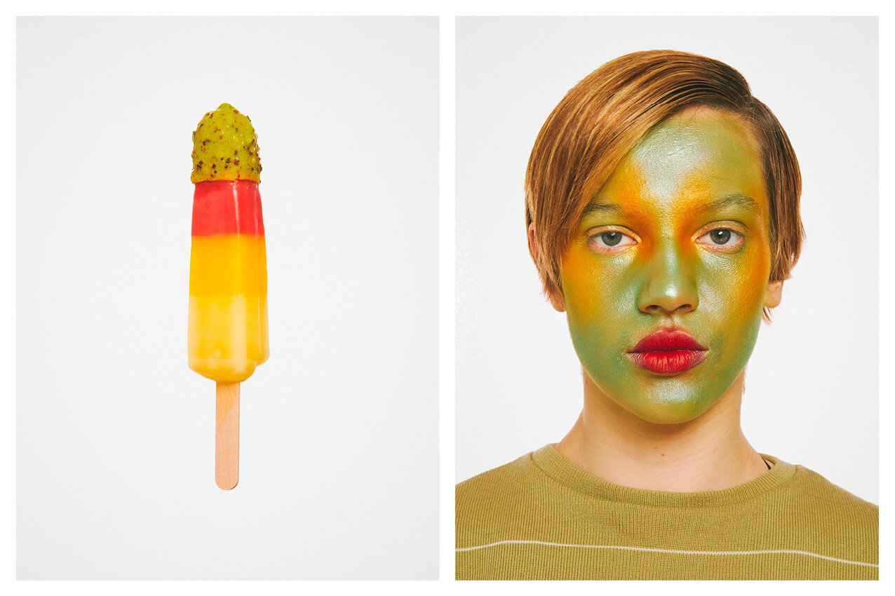 Στο Pleasure Portraits, τα πρόσωπα μεταμορφώνονται σε γλυκίσματα, σε χρώματα που θυμίζουν κρέμα, σάρκα, πλαστικό.