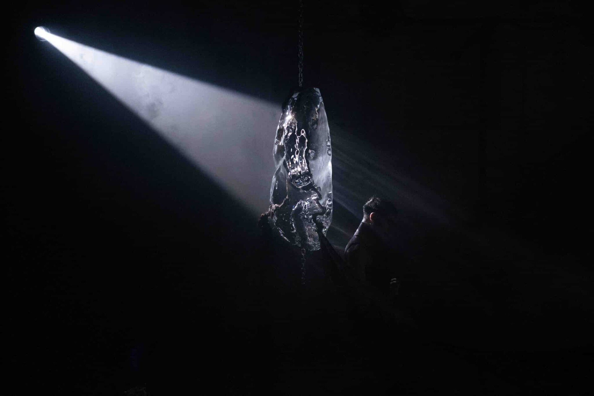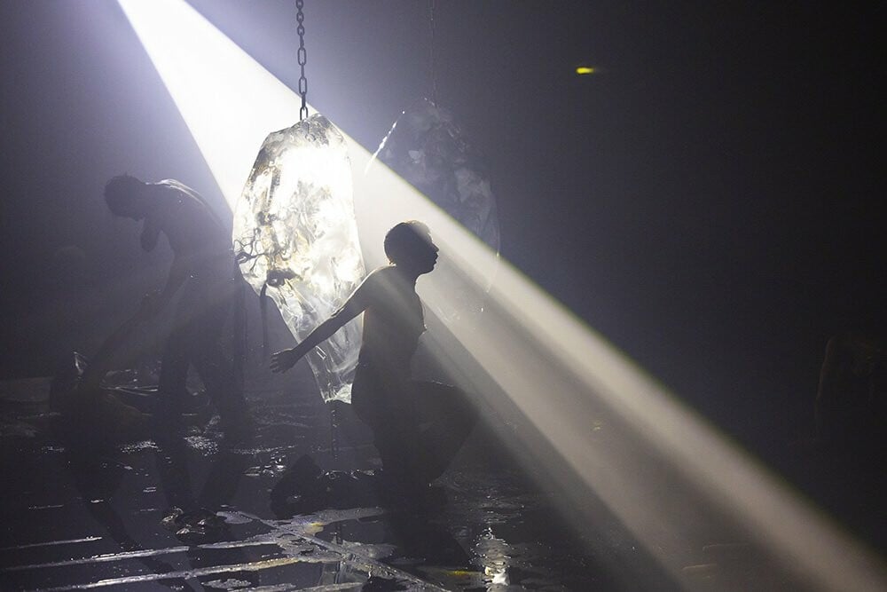 Στο Mille et Une Nuits, ο Darabi μεταφέρει το βλέμμα του μέσα στο ίδιο το αρχέτυπο της αφήγησης. Η Σεχραζάδ, η γυναίκα που διέσωσε τη ζωή της αφηγούμενη, γίνεται τώρα queer προφήτισσα: αφηγείται για να διασώσει τις φωνές των σωμάτων που ιστορικά διαγράφηκαν. Γύρω της, οκτώ σώματα, χορευτές, τραγουδιστές, ερμηνευτές εμφανίζονται σαν πνεύματα της ίδιας νύχτας. Χορεύουν και ψιθυρίζουν, τραγουδούν και λιώνουν, καθώς οι πάγοι που αιωρούνται πάνω από τη σκηνή στάζουν αργά∙ σαν να μετράει ο χρόνος τις σταγόνες της επιβίωσης.