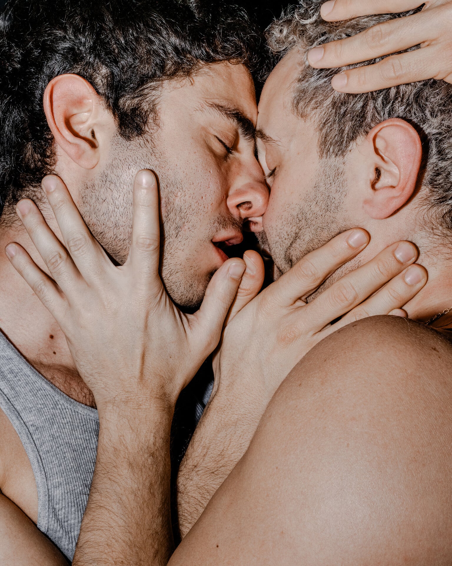Η έκθεσή του Hard Feelings, που παρουσιάζεται στο Baxter Street at Camera Club of New York, δεν είναι ένα portfolio «ευάλωτης αρρενωπότητας». Είναι δεκαετής καταγραφή μιας κοινότητας που έμαθε να αγαπά μέσα από απώλειες. Επτά –τώρα οκτώ– φίλοι χαμένοι. Overdoses. Ατυχήματα. Βία που δεν χρειάζεται να φωνάξει για να είναι παρούσα.