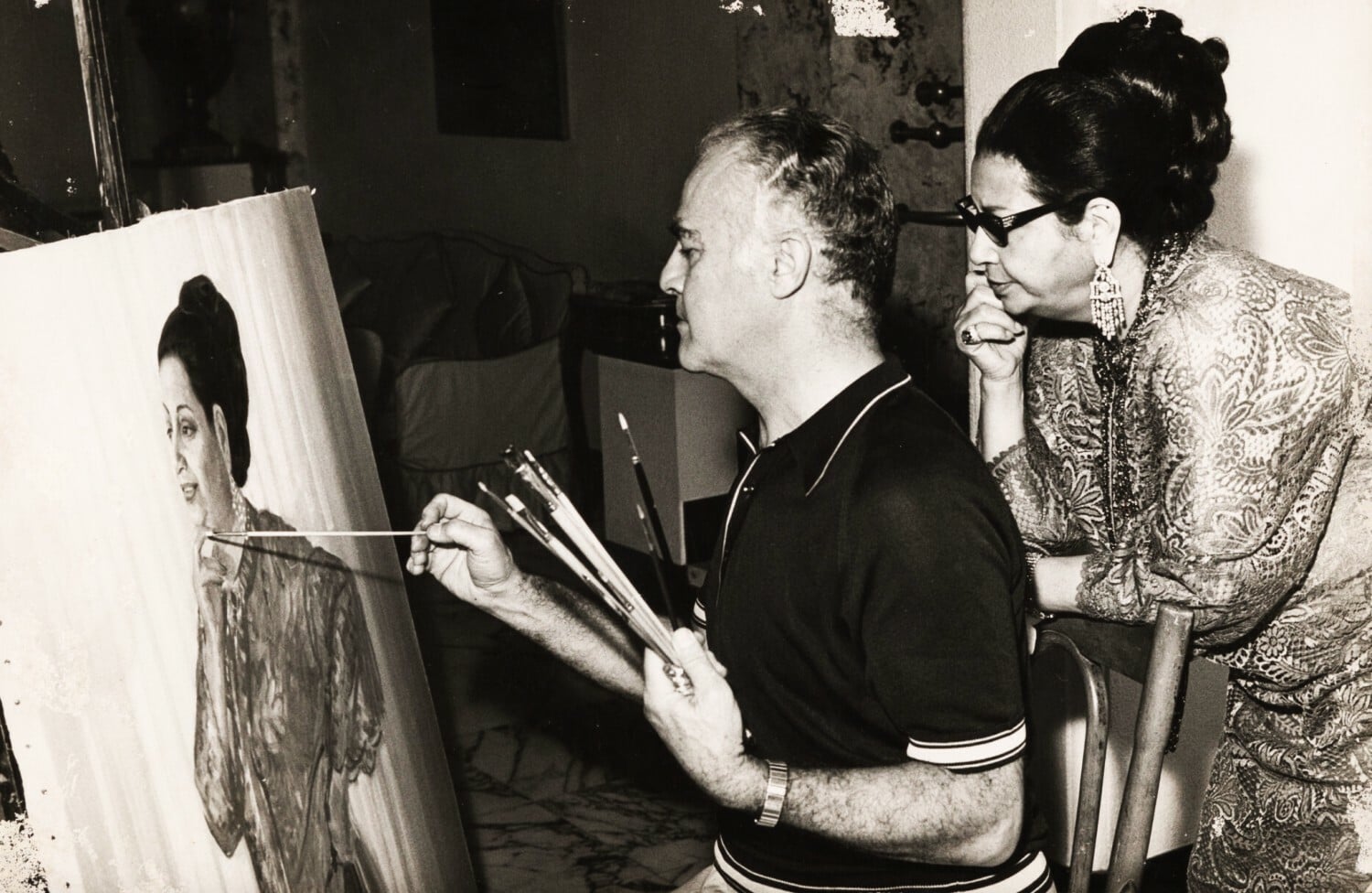 Όλες αυτές οι γυναίκες σ’ εκείνα τα δωμάτια με τους καναπέδες, τα λουλούδια, τα χειροποίητα κάδρα μοιάζουν σαν να συμμετέχουν σε μια μυστική τελετή όπου ο δημιουργός, ο καμβάς και το σώμα δεν ξέρουν ποιος υπακούει σε ποιον. Στις φωτογραφίες, η πραγματική γυναίκα και η ζωγραφισμένη γυναίκα δεν προσπαθούν να μοιάσουν∙ προσπαθούν να συνυπάρξουν για ένα δευτερόλεπτο, σαν να περνά το ρεύμα από τη μία ζωή στην άλλη. Η στιγμή του κλικ είναι η στιγμή της μεταγραφής. Η στιγμή της κληροδοσίας.