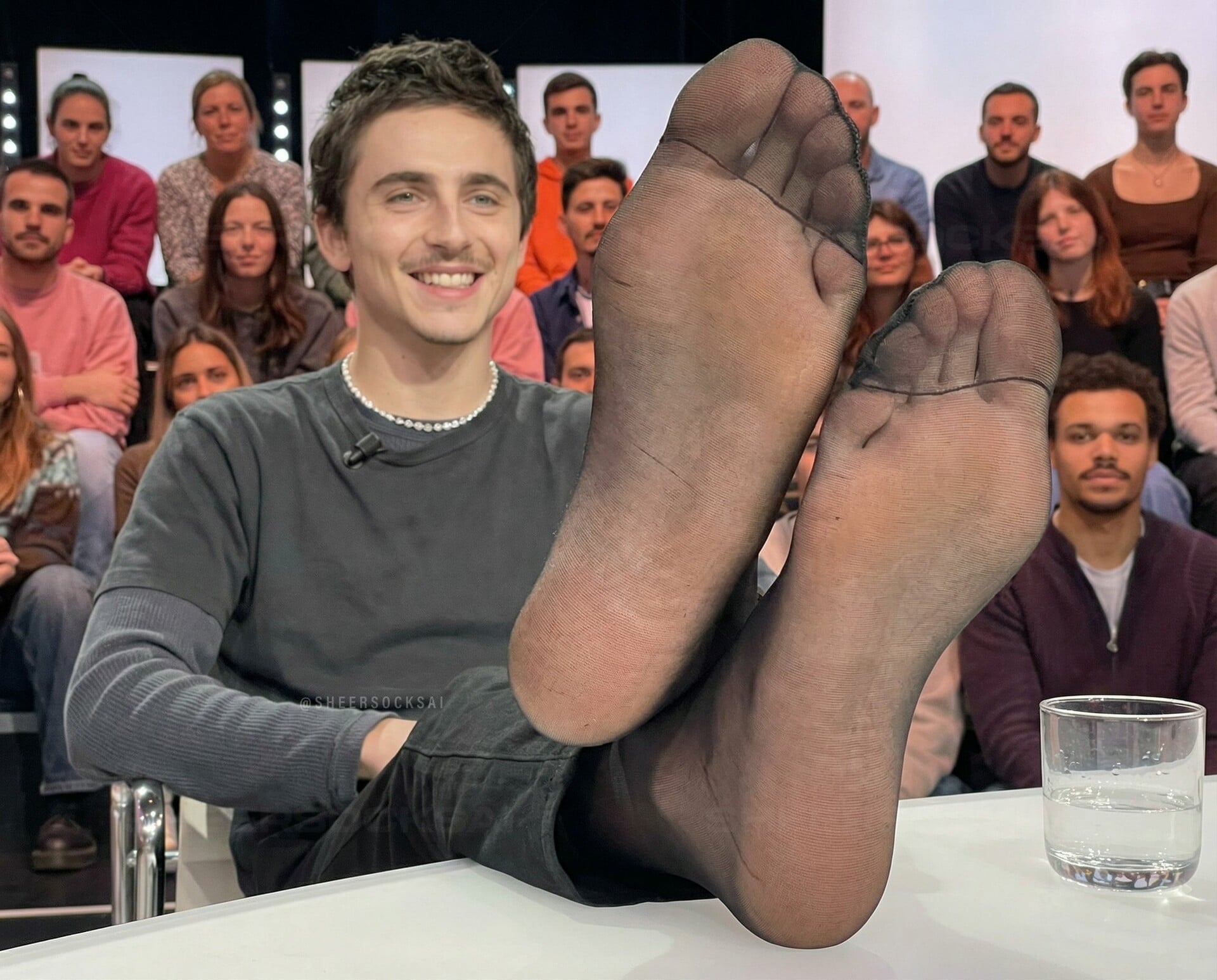 Στο @sheersocksai, άντρες τόσο διάσημοι ώστε να μοιάζουν απρόσιτοι –Timothée Chalamet, Jacob Elordi, Austin Butler, Jeremy Allen White, Mike Faist, Pedro Pascal– εμφανίζονται ξαπλωμένοι, με τα πέλματα στραμμένα προς την κάμερα, τυλιγμένα σε ένα ύφασμα τόσο λεπτό ώστε δεν κρύβει σχεδόν τίποτα. Κι όμως, μοιάζει να προστατεύει τα πάντα.