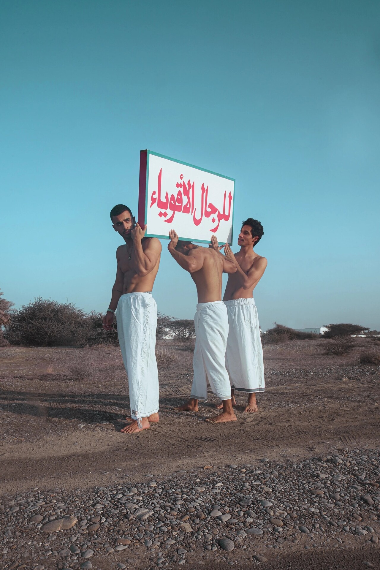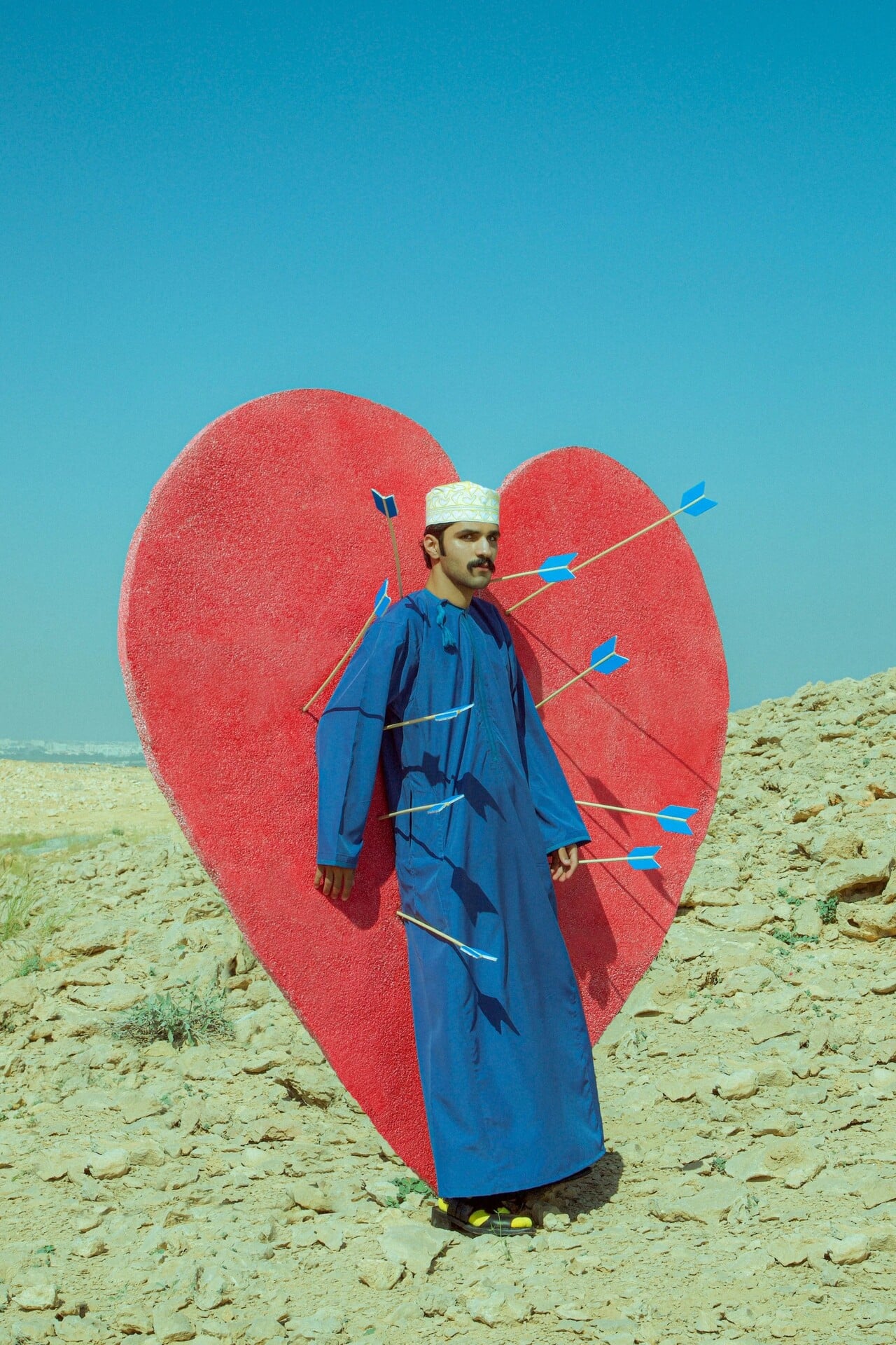 Στον κόσμο του Al-Hosni, οι άντρες δεν είναι βράχοι, δεν είναι τοτέμ, δεν είναι σύμβολα. Είναι φορείς συναισθήματος.Κρατούν ροζ καρδιές με την άνεση που άλλοι κρατούν όπλα. Φορούν παραδοσιακά ρούχα όχι σαν σημαίες ταυτότητας, αλλά σαν δέρμα που επιτρέπει να διαφανεί το μέσα. Ποζάρουν όχι για να εντυπωσιάσουν, αλλά για να παραδεχτούν ότι νιώθουν.
