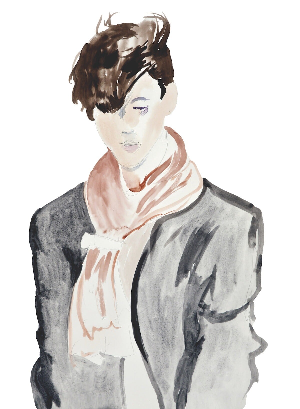 Στις υδατογραφίες του, η νεότητα μοιάζει με παύση. Όχι τη θεατρική παύση της πόζας, αλλά εκείνη τη σιωπή που προηγείται της αυτοσυνείδησης. Το νερό λειτουργεί σαν δεύτερο δέρμα· δεν ωραιοποιεί, δεν διορθώνει. Αφήνει το τυχαίο να επιμείνει. Κι εκεί, στην ατέλεια της γραμμής, γεννιέται κάτι πιο ανθρώπινο από την ίδια την ομορφιά.
