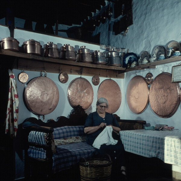 Mια ηλικιωμένη γυναίκα πλέκει, Αλόννησος, Σεπτέμβριος 1972. Φωτ.: Konrad Helbig/Deutsche Fotothek
