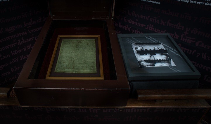 Εκεί βρίσκεται ένα από τα τέσσερα αντίγραφα της Magna Carta που γράφτηκαν το 1215. Δίπλα στο αρχαίο έγγραφο βρίσκεται από της 3 Ιουλίου ένα αντίτυπο του άλμπουμ του Jay-Z και θα παραμείνει εκεί μέχρι το τέλος του Ιουλίου.