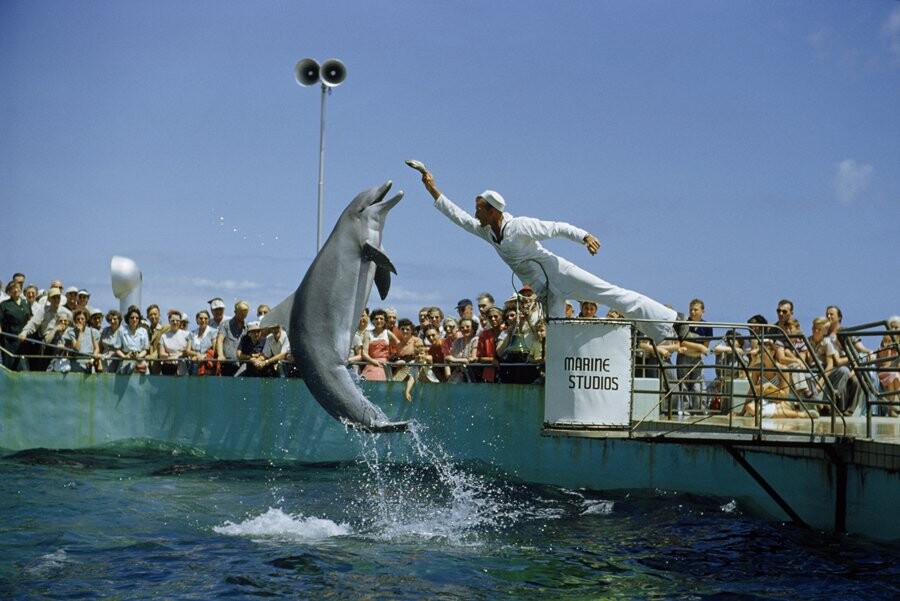 4. FacebookTwitter Ταΐζοντας ένα δελφίνι σε έναν ζωολογικό κήπο στη Φλόριντα, Νοέμβριος 1952