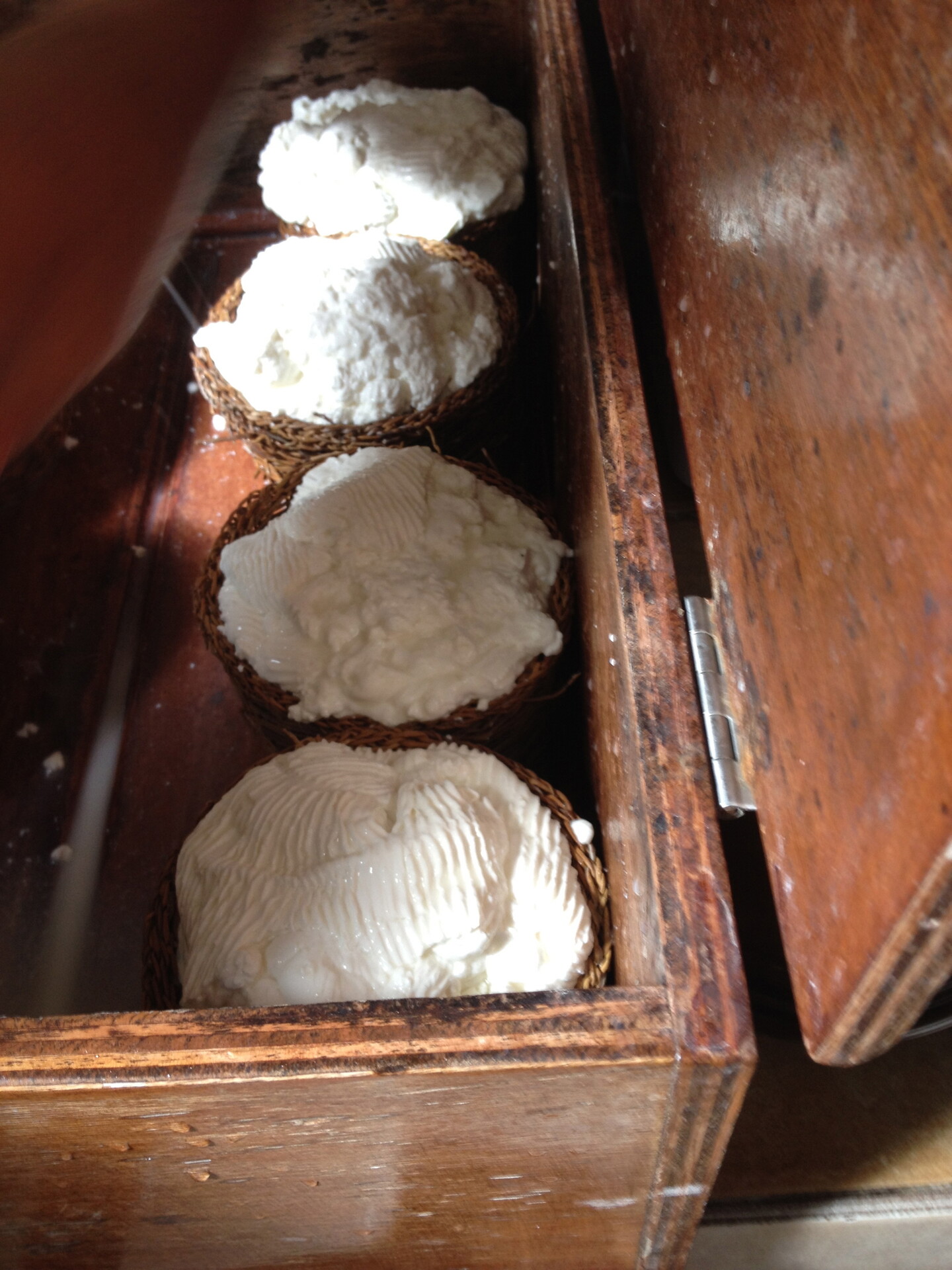 Το τυρί μπαίνει για το πρώτο στράγγιγμα σε καλαθάκια πλαστικά