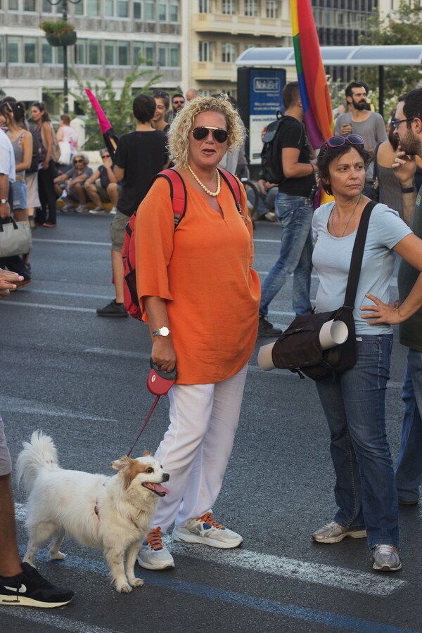 Η πορεία, στο αποκορύφωμα της οποίας συμμετείχαν κοντά 2000 άτομα με την αστυνομία να παρακολουθεί διακριτικά, άρχισε στις 18:00 ακολουθώντας τη διαδρομή Πρόκλου-Ερατοσθένους-Β. Κων/νου –Β. Όλγας –Β. Αμαλίας για να καταλήξει στη Βουλή. Πολυσυλλεκτική, με αρκετό ενθουσιασμό αλλά χαλαρή, δίχως κανενός τύπου «καθοδήγηση», συν κάποιες γραφικές πινελιές, θύμιζε περισσότερο υγιεινό περίπατο παρά οργισμένη, μαχητική διεκδίκηση. Ίσως όμως αυτό την έκανε πιο «προσιτή» σε κόσμο λιγότερο θαρραλέο. Μοιράστηκαν προκηρύξεις, πετάχτηκαν φέιγ βολάν, φωνάχτηκαν αντιρατσιστικά-αντιφασιστικά συνθήματα («ούτε στο Παγκράτι/ούτε πουθενά», «ρατσισμός, ομοφοβία, τρανσφοβία/ξεκινάνε από την ίδια αφετηρία», «καλύτερα πουσταριό/παρά φασισταριό», «σε κάθε σεξιστή και ομοφοβικό/αξίζει μια βουτιά απ' τον Λυκαβηττό»), ενώ «κομάντο» με σπρέι και στένσιλ έγραψαν αντίστοιχα σε τοίχους (δίχως να χαριστούν ούτε στα μάρμαρα, κάτι που προκάλεσε μουρμούρες). Αρκετά πλακάτ εστίαζαν στη θεσμική ισότητα («Λέτε όχι σε γάμους και παιδιά/αλλά ζητάτε να πληρώσουμε ΕΝΦΙΑ», «Ίδιοι φόροι/ίδια δικαιώματα»), ένα άλλο καλούσε τον Άνθιμο «να πει αλεύρι». Απέναντι από τον Άγνωστο Στρατιώτη παρέμειναν συγκεντρωμένοι επί ώρα κάπου 200 διαδηλωτές φωνάζοντας συνθήματα, συζητώντας και σχολιάζοντας τα τεκταινόμενα.