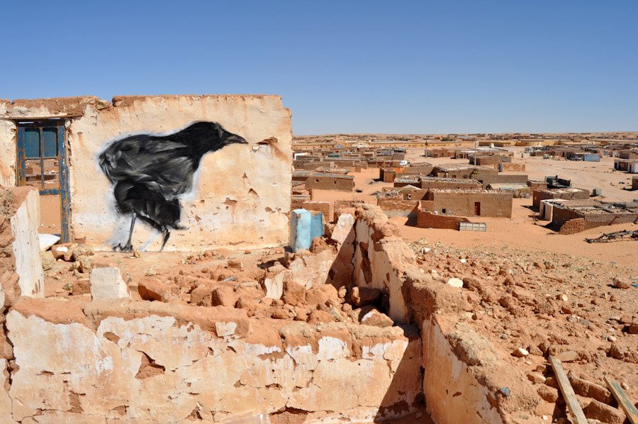 Έζησε για λίγο καιρό με τους κατοίκους εκεί και έντυσε με τα έργα του τα παλιά ερειπωμένα σπίτια τους στην έρημο θέλοντας να υποστηρίξει το αιτημά τους για αυτοδιάθεση και την επιθυμιά τους για ειρήνη και ελευθερία.