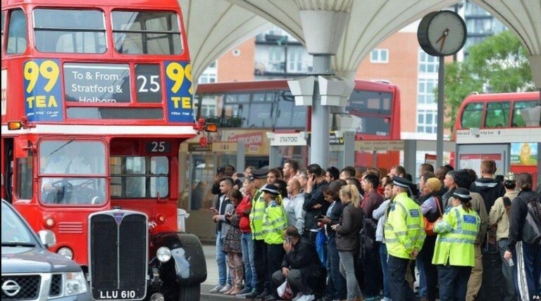 Παρά τα 250 επιπλέον λεωφορεία που τέθηκαν σε κυκλοφορία από την αρμοδια αρχή, την Transport for London (TfL), μεγάλος συνωστισμός παρατηρούνταν στο δίκτυο των λεωφορείων, η ομαλή λειτουργία του οποίου εμποδιζόταν επίσης από τα πολλά μποτιλιαρίσματα.