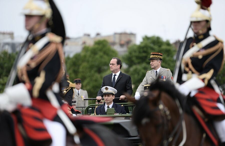 Στους επισήμους, δίπλα από τον πρόεδρο Ολάντ ήταν και ο αμερικανός υπουργός εξωτερικών Τζον Κέρι