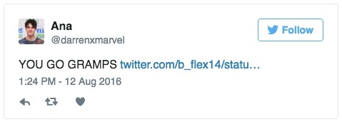 Την ίδια ώρα απαθανάτισε το σόου του 68χρονου και το δημοσίευσε στο Twitter όπου η ανταπόκριση ήταν τεράστια με πάνω από 100.000 retweet και πολλά σχόλια που δήλωναν θαυμασμό για τον παππού.