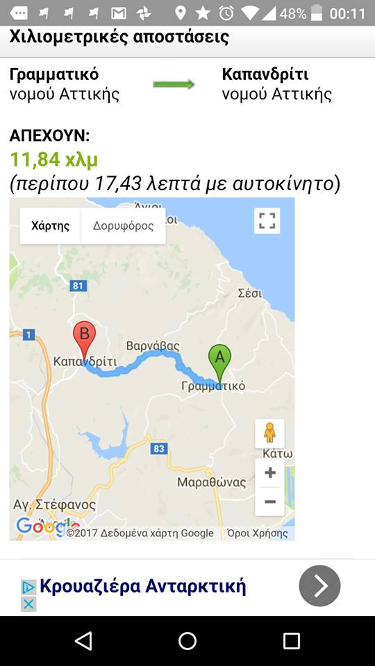Για τον ισχυρισμό περί 30 χλμ. μακριά απ' τα σημεία της πυρκαγιάς, σχολιάστρια έκανε κατευθείαν τσεκάρισμα, διαψεύδοντάς τον: «Καπανδριτι - Γραμματικο 12 χλμ / Βαρναβας - Γραμματικο 6 χλμ».