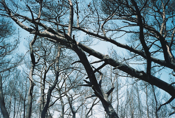Ο φωτογράφος Σπύρος Παλούκης βρέθηκε για τις καλοκαιρινές του διακοπές στα Κύθηρα, λίγες μέρες μετά από τις καταστροφικές πυρκαγιές του φετινού Αυγούστου, που έκαψαν 15.000 στρέμματα παρθένου δάσους. Με μια αναλογική μηχανή απαθανάτισε το καρβουνιασμένο τοπίο και ονομάζει το πρότζεκτ «Το Κουτί της Πανδώρας».