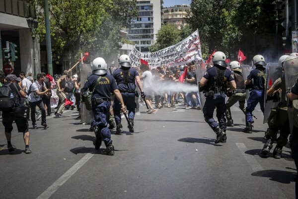 Ένταση και χημικά στην πορεία στο κέντρο της Αθήνας - Επεισόδια μεταξύ διαδηλωτών και ΜΑΤ