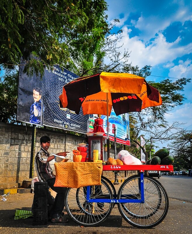Πρώτα από όλα με χρώμα, πολύ χρώμα. Κορεσμένο χρώμα. Τόσο στην κάμερα όσο και κατά το post-processing. Για ασπρόμαυρο, ούτε λόγος. Δεν υπάρχει ασπρόμαυρη Ινδία. Η ασπρόμαυρη φωτογραφία είναι η αναζήτηση της «φόρμας» και πολύ απλά, φόρμα στην Ινδία δεν υφίσταται.