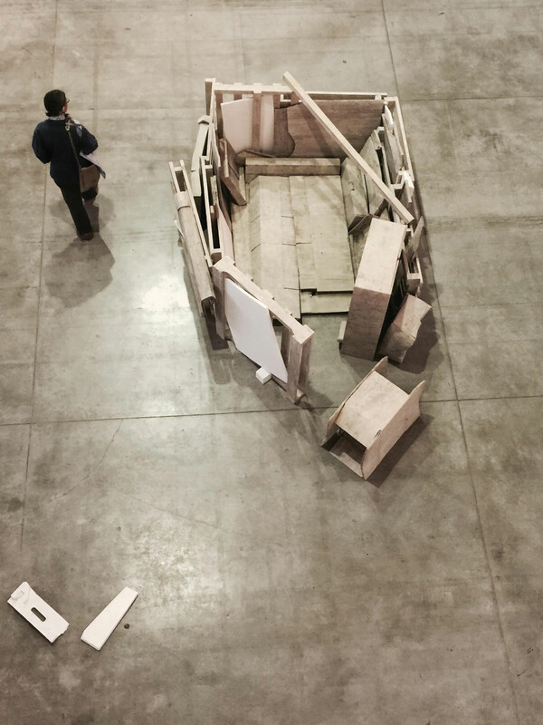 Δύο εγκαταστάσεις που αναπτύσσονται αντιθετικά και αμφίδρομα, σε δύο διαδοχικά επίπεδα του εκθεσιακού χώρου, γύρω από το νοηματικό δίπολο πλεόνασμα-έλλειμμα. Στο ισόγειο της γκαλερί, μια μαρμάρινη επιφάνεια, δουλεμένη έτσι ώστε να μιμείται διαβρωμένο από την υγρασία τοίχο, προσαρμόζεται πάνω στον πραγματικό τοίχο και παραδίπλα ακουμπά μια μαρμάρινη σκάλα που δείχνει ξύλινη. Στο υπόγειο στήνεται ένα ολόκληρο σκηνικό. Στο δάπεδο, ξεραμένος και κρακελαρισμένος πηλός μιμείται αποξηραμένο υδάτινο περιβάλλον (ποτάμι, λίμνη, έλος), όπου επιζεί ακόμα μια ρυθμική και ακανόνιστα διακοπτόμενη σειρά από καλάμια. Κοινός παρονομαστής των δύο εγκαταστάσεων είναι το υγρό στοιχείο, το νερό, είτε διά της πλεονάζουσας και άκαιρης παρουσίας του, είτε διά της απουσίας του.