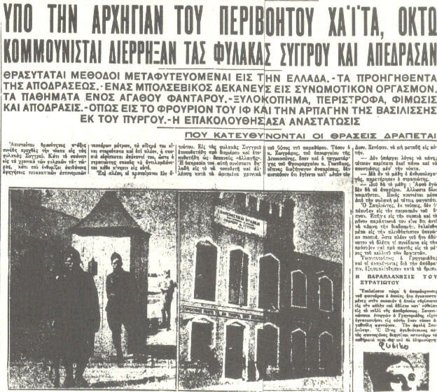 Με αυτά τα λόγια ξεκινάει ο συντάκτης της «Ακρόπολις» το ρεπορτάζ του για την πρώτη μαζική απόδραση στα ελληνικά χρονικά τον Απρίλιο του 1931, στην οποία πρωταγωνίστησαν 8 κομμουνιστές κρατούμενοι.