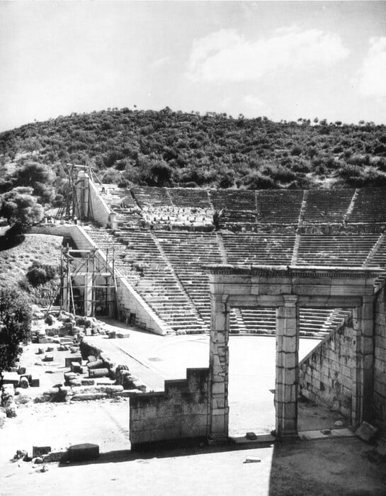 Ευχαριστούμε θερμά τον αρχιτέκτονα κ. Κωνσταντίνο Μπολέτη για την παραχώρηση του σπάνιου φωτογραφικού υλικού σχετικά με το αρχαίο θέατρο της Επιδαύρου. (Απαγορεύεται η αναδημοσίευσή του)