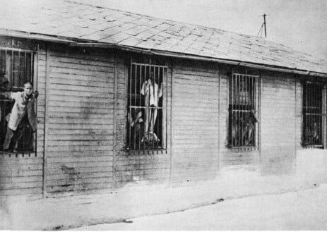 κι' έπειτα μια μεγάλη αυλή, και μέσα στην αυλή μικρές παράγκες. Όλα είναι φτωχά εδώ έξω. Για να μπείτε πρέπει να είσθε τρελός ή να έχετε άδειαν από το υπουργείον», γράφει τον Μάρτη του 1929 ο συντάκτης της εφημερίδας «Πατρίς» με το ψευδώνυμο Κάππα. Έπειτα έδωσε την άδεια του μέσα από τα κάγκελα της πόρτας και μετά από μια στιγμή ο φύλακας τού άνοιξε.