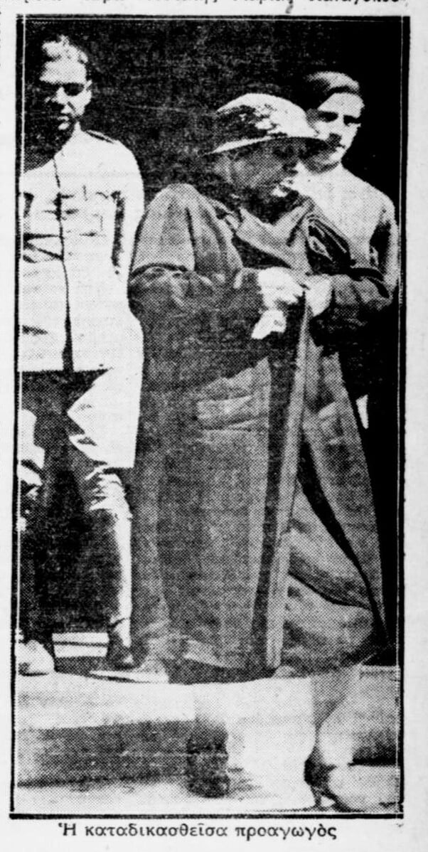 Το κρούσμα, σύμφωνα με τις βεβαιώσεις του συντάκτη, είναι «τόσον αληθινόν και βέβαιον», ώστε το Πλημμελειοδικείο Αθηνών καταδίκασε σε δεκάμηνη φυλάκιση την Παναγοπούλου, η οποία διατηρούσε στην οδό Θουκυδίδου 1 το ύποπτο, σύμφωνα με τον χαρακτηρισμό της Αστυνομίας, κέντρο.