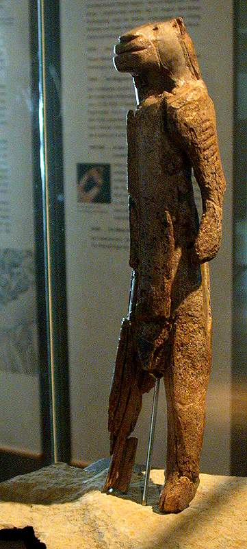 Με το ξέσπασμα του πολέμου, την τελευταία μέρα της ανασκαφής, οι Wetsel και Völzing περισυνέλεξαν έναν σωρό οστέινων θραυσμάτων, και στη συνέχεια κάλυψαν βιαστικά τα στρώματα στα οποία είχαν φτάσει. Έπρεπε να περάσουν όμως περισσότερα από 30 χρόνια μέχρι να ασχοληθεί κάποιος συστηματικά με εκείνον τον σωρό οστών και να διαπιστώσει ότι συνέθεταν ένα σπάνιο ειδώλιο όρθιας ανθρώπινης μορφής. Αρχικά ήταν ακέφαλο, αλλά αργότερα βρέθηκαν περισσότερα κομμάτια που συνανήκαν και έτσι διαπιστώθηκε ότι το ειδώλιο είχε κεφαλή λιονταριού.