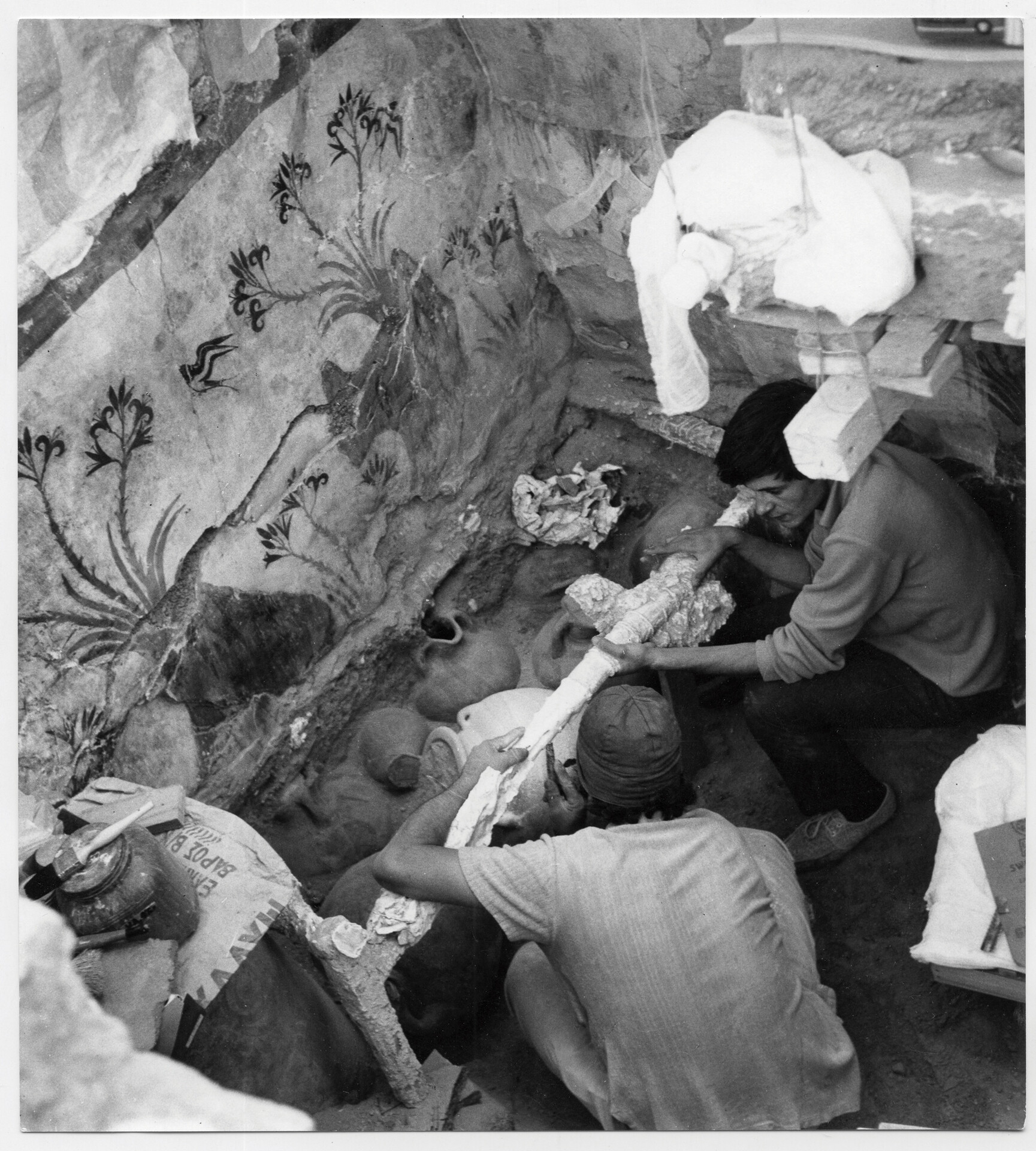 Ίσως αυτή η φωτογραφία, που συνέδεε το παρελθόν με το παρόν, αποτέλεσε το έναυσμα για τη συνεργασία μεταξύ Μαρινάτου και Μελετζή. Εντυπωσιασμένος από τη δουλειά του φωτογράφου, υποθέτω ότι ο Μαρινάτος του ζήτησε να φωτογραφήσει επισήμως την ανασκαφή - αυτό βέβαια είναι μια υπόθεση. Πάντως η φωτογράφιση έγινε το 1970.