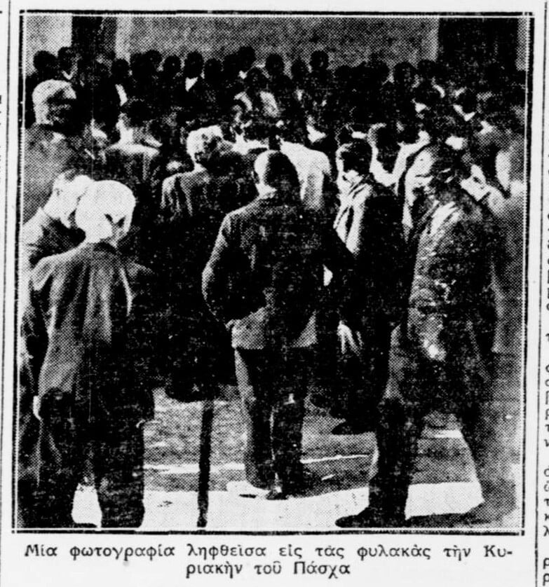 Η στιγμή ήταν συγκινητική. Όλες σταυροκοπιούνταν με βαθιά ζωγραφισμένη στο πρόσωπο τη θεοσέβεια. Η ματιά του δημοσιογράφου έπιασε τη διαβόητη λωποδύτρια Παναγκίνη, πιο πέρα μια μαμή, που είχε «κάμει το μαιευτήριο της προ χρόνων μηχανοστάσιο εκτρώσεων». Στην άλλη άκρη ίστανται με θρησκευτική κατάνυξη μια Θρακιώτισσα λησταρχίνα, που τρία χρόνια πριν, μαζί με τον εραστή της, είχε ληστέψει και κομματιάσει τον άνδρα της.