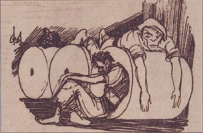 Μπροστά στους δημοσιογράφους ρώτησε ο υπαστυνόμος Π. Τσιγκρής αν προτιμάνε φαγητό ή πρέζα και «απάντησαν όλοι ως από δαιμονική συγχορδία: “Πρέζα - πρέζα, ν' αγιάσουν τα χέρια σου”. Και όταν αυτή διενεμήθη, όταν την στράγγισαν τρίβοντας τις μύτες τους επάνω στα κρυσταλλικά σκουνάκια, έγειραν, ξαπλώθηκαν χάμω. Η αποχαύνωσις ήλθε γρήγορα. Έβλεπες ανθρώπινα κορμιά παρατημένα χάμω με την αποκρουστική μυρουδιά από την απλυσιά να σαλεύουν σαν σκουλήκια».