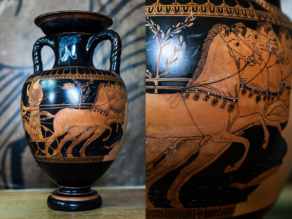 Ναι. Πιστεύω πως υπήρχαν εργαστήρια που είχαν πολύ κόσμο. Άλλος έφτιαχνε τη βάση, άλλος τα χέρια, άλλος ζωγράφιζε. Ο μεγάλος καλλιτέχνης έπιανε την πλευρά που ήθελε. Η πίσω πλευρά γινόταν από τον βοηθό του. Ο Ευφρόνιος άφησε τη δαχτυλιά του εκεί όπου τελείωνε το φτερό του Ύπνου, σαν σφραγίδα. Φαίνονται αυτά, γιατί κανείς δεν μπορεί να τιθασεύσει τη γραμμή ενός καλλιτέχνη ή τη λεπτότητά της. Κάτι θα σου ξεφύγει. Αυτό είναι η αγγειογραφία. Βλέπεις επιμελώς τις γραμμές. Πρέπει να δείξεις τη ματιά τους, το βλέμμα τους. Είναι ένας καθρέφτης. Σου μιλάνε τα αγγεία και σου λένε ιστορίες για το πώς ζούσαν οι άνθρωποι τότε, τι πίστευαν.