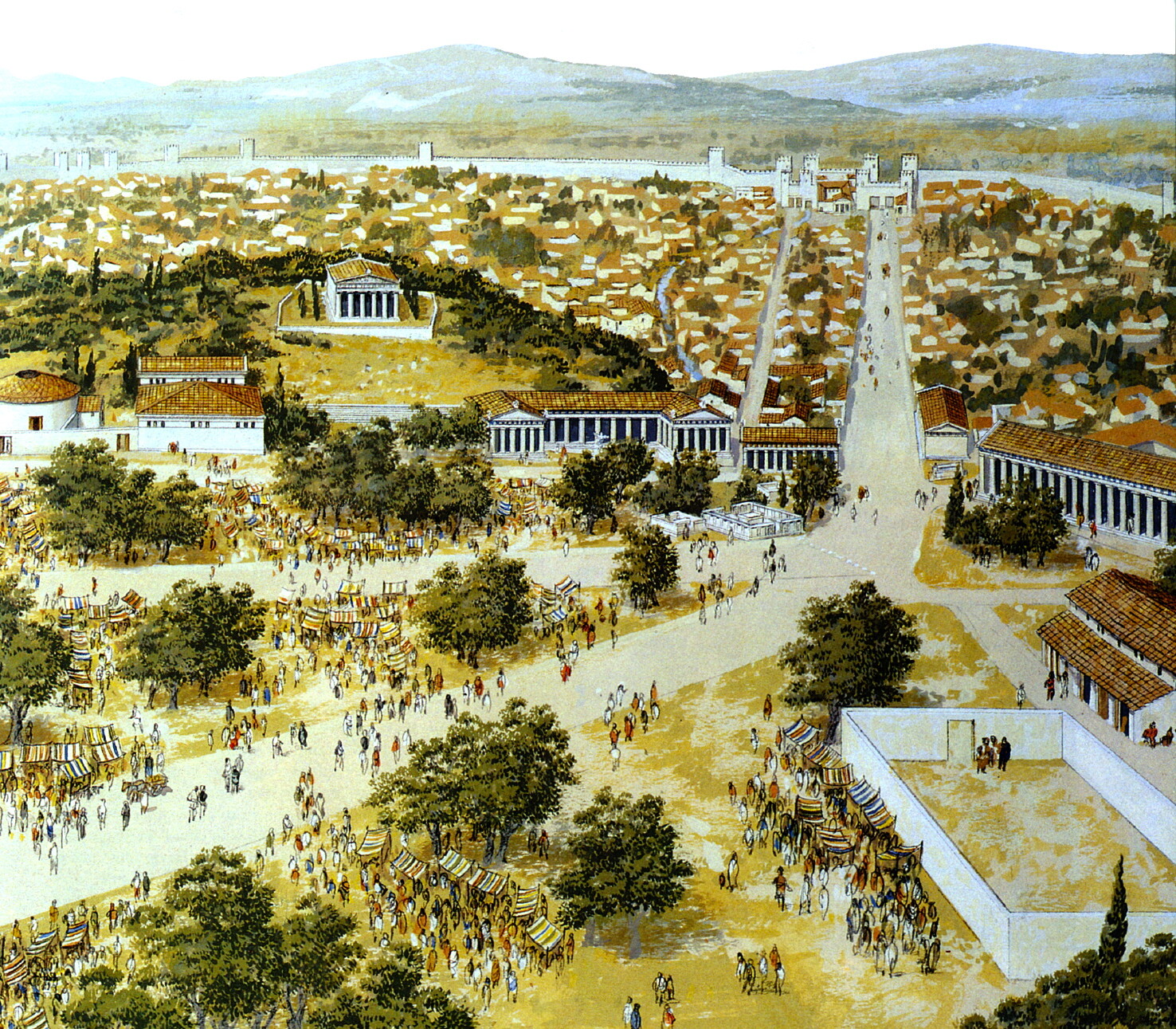 Αν βρισκόμασταν στην περιοχή της οδού Κοραή γύρω στο 450 π.Χ. και κοιτάζαμε προς την πλατεία Κλαυθμώνος, θα αντικρίζαμε ένα επιβλητικό τείχος ύψους περίπου 9-10 μ. Θα είχαμε έλθει από τα Μεσόγεια και τριγύρω μας (κατά μήκος των σημερινών οδών Πανεπιστημίου και Σταδίου) θα απλώνονταν νεκροταφεία με εντυπωσιακούς περιβόλους και περίτεχνες επιτύμβιες στήλες, ενώ στις μύτες μας ίσως έφθαναν ενοχλητικές οσμές από τα εργαστήρια μεταλλουργίας που υπήρχαν στο Σύνταγμα. Από το συγκεκριμένο σημείο θα μπορούσαμε να εισέλθουμε στην πόλη πεζή, μέσω μιας μικρής πυλίδας. Αν όμως είχαμε άμαξα, θα έπρεπε να μεταβούμε σε μία από τις τουλάχιστον 13 μεγαλοπρεπείς πύλες που περιέβαλλαν τα αρχαία τείχη των Αθηνών.