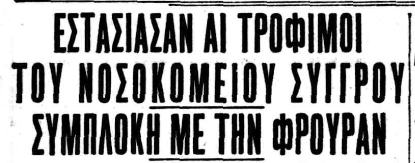 «ΤΟ ΠΛΕΟΝ ΣΥΦΟΡΙΑΣΜΕΝΟ κατακάθι του κοινωνικού μας υποκόσμου εστασίασε. Και τι στάσις! Δεν αφήκε τίποτε όρθιον, σώον και ακέραιον. Τσανάκια, μπρίκια, μπουκάλες, φάρμακα, και πατσαβούρες, ό,τι τέλος πάντων υπάρχει εις το νοσοκομείον Συγγρού, εις τον μεγάλον προμαχώνα εναντίον της φρικτής σπειροχαίτης και των άλλων απαισίων νοσημάτων που ο δρομαίος έρως σκορπά, έγινε πολεμικόν υλικόν υπέρ αυτής της επαναστάσεως».