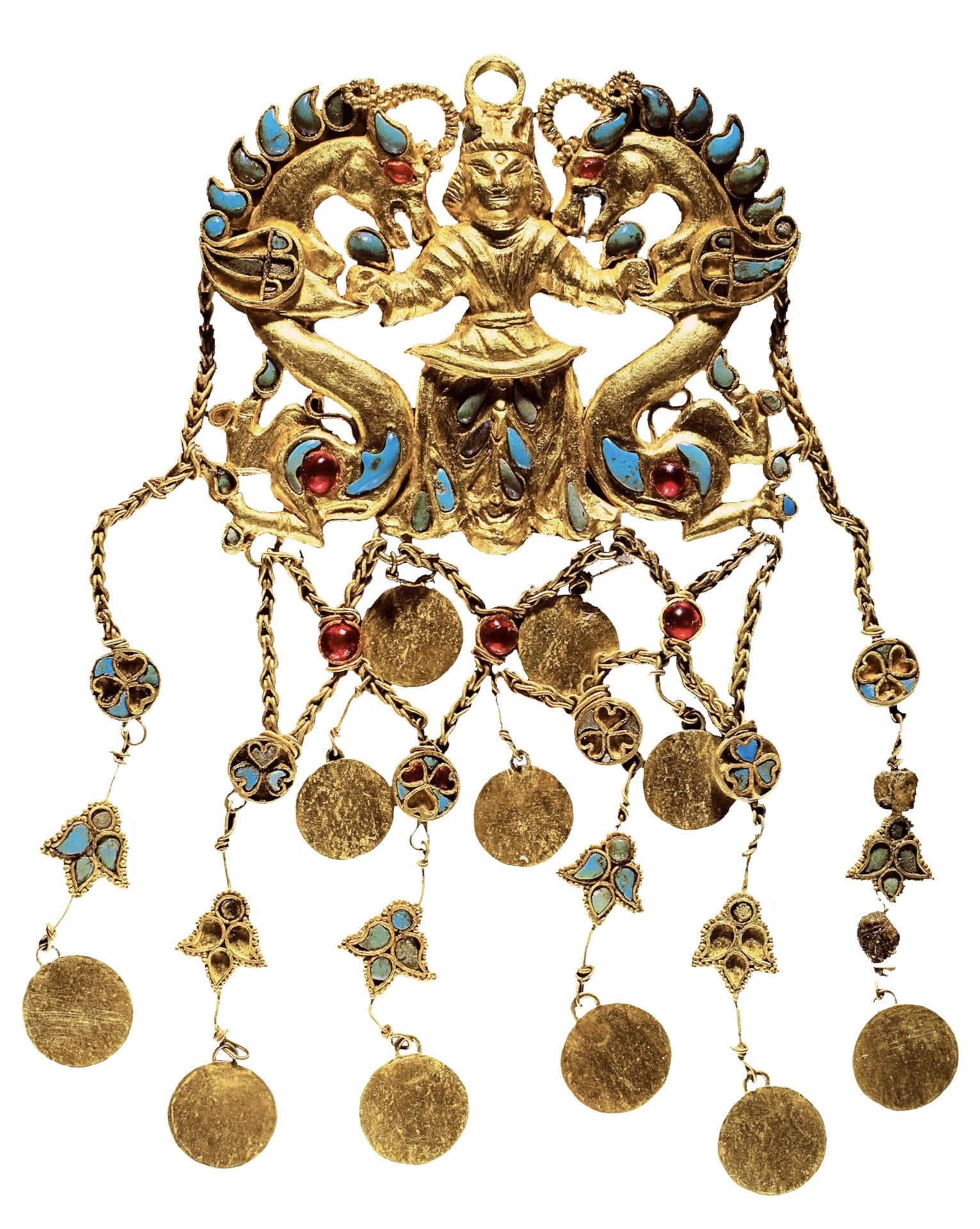 Στα χρυσά ευρήματα, η αρχαιοελληνική αισθητική επιρροή συνυπάρχει με εκείνη της Ινδίας, της Κίνας, της Ρώμης, της Περσίας και των φυλών του Αλτάι. Κοσμήματα όπως σκουλαρίκια με την μορφή φτερωτών Ερώτων με μογγολοειδή χαρακτηριστικά, μια φτερωτή Αφροδίτη σαν της Μήλου με την χαρακτηριστική ινδική βούλα στο μέτωπο, χρυσά περιδέραια με την μορφή ενός βασιλέα που παλεύει με δύο φανταστικά τέρατα που του επιτίθενται εξ αριστερών και εκ δεξιών και δύο πόρπες με την μορφή του Μέγα Αλεξάνδρου μαρτυρούν τον συγχρωτισμό[2] που επικρατούσε στην περιοχή.