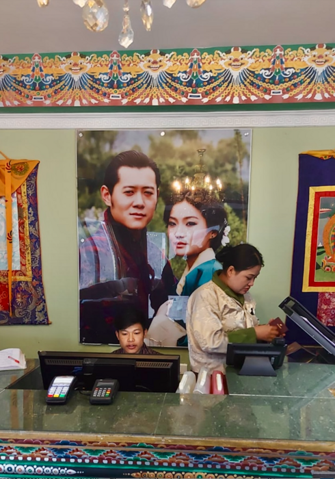 Μ.: Δεν είμαι σίγουρη, διότι μείναμε λίγο, αν και είναι η μόνη χώρα του κόσμου όπου ο δείκτης ευτυχίας, μέγεθος μετρήσιμο από τη στατιστική υπηρεσία, θεωρείται σημαντικότερος από το ετήσιο κατά κεφαλήν εισόδημα των 1.500 δολαρίων που αναλογεί στους 700.000 πολίτες. Όλοι οι νέοι, οι οποίοι ντύνονται ακόμη με την παραδοσιακή στολή της χώρας, έχουν στο κινητό τους την εικόνα του βασιλικού ζεύγους, ενός πολύ νέου και όμορφου ζευγαριού. Λατρεύουν τον νεαρό βασιλιά τους, ο οποίος κυκλοφορεί ανάμεσά τους με το ποδήλατο, ενώ η βασίλισσα είναι κόρη πιλότου, επαγγελματική ιδιότητα που τυγχάνει μεγάλου κύρους γιατί έχουν ένα αεροδρόμιο ιδιαίτερα δύσκολο να το προσεγγίσει αεροπλάνο. Μόλις 80 άνθρωποι έχουν άδεια πιλότου.
