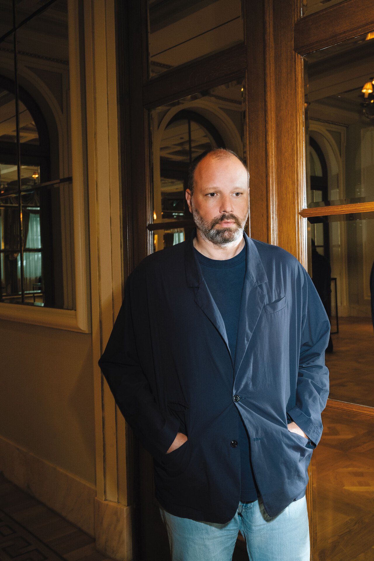 Κι όμως, δεν προεξοφλεί την καριέρα του, δεν προδικάζει το μέλλον του. Ένα βήμα τη φορά. Δεν είχε στο μυαλό του το εξωτερικό από το get go – το προσωπικό καλλιτεχνικό του όραμα τον οδήγησε στο Λονδίνο. Δεν ξεκίνησε με πολιτικές δηλώσεις μέσα από τον κινηματογράφο που πάντα τον ενδιέφερε να κάνει, αλλά τώρα η πιο ευαισθητοποιημένη ταινία του για το πού βαδίζει ο κόσμος μας, η μαύρη κωμωδία επιστημονικής φαντασίας Βουγονία, συνέπεσε, σίγουρα όχι τυχαία, με την εύγλωττη στάση του για την Παλαιστίνη. Κι εδώ που τα λέμε, δεν γεννήθηκε Ολυμπιακός, πρώτα τον συνάρπασε η ομάδα και έπειτα της αφοσιώθηκε. Ακόμη και για τον τόνο των ταινιών του, τον περίφημο σουρεαλιστικό παραλογισμό που υποβάλλει το ύφος ή επιβάλλεται σε αυτό, δεν παραδέχεται ευθεία πρόθεση, αφήνοντας την τελική κρίση σε εμάς.