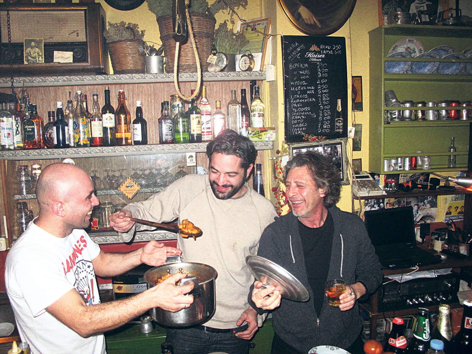 Στην ανοιχτή κουζίνα που βρίσκεται πίσω από το μπαρ ο ιδιοκτήτης βράζει φασόλια στα τσικάλια και τηγανίζει κεφτεδάκια, φορώντας μπλούζα Ramones. Τα φώτα αναβοσβήνουν. Πάνω στο μεγάλο κρεσέντο της μπάντας το μαγαζί σχεδόν συσκοτίζεται και μια αλλόκοτη έξαψη πλανάται στην ατμόσφαιρα. Στα ασφυκτικά στριμωγμένα τραπέζια οι παρέες μοιράζονται φαγητά, ρακές, ουίσκια.