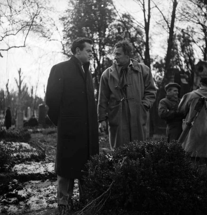 Ο Τζόζεφ Κότεν ως Χόλι Μάρτινς, ο αφελής συγγραφέας pulp γουέστερν που φτάνει στη Βιέννη για να συναντήσει τον παλιό του συμμαθητή Χάρι Λάιμ, ήταν σε κακόκεφη διάθεση – του άρεσε το ποτό, αλλά ο Ριντ τον είχε προειδοποιήσει να μην πιει ούτε σταγόνα κατά τα γυρίσματα. Τον Κότεν συνόδευε η σύζυγός του αλλά ο γάμος τους βρισκόταν σε τελικό στάδιο πίεσης. Ο Τρέβορ Χάουαρντ, στον ρόλο του ψυχρού και σαρδόνιου ταγματάρχη Κάλογουεϊ, και ο Μπέρναρντ Λι στον ρόλο του ευγενικού βοηθού του, του λοχία Πέιν, αδιαφορούσαν για τέτοιου είδους περιορισμούς όσον αφορά το αλκοόλ. Έπρεπε να τους ξυπνούν κάθε πρωί από τα δωμάτια του ξενοδοχείου τους με φωνές του τύπου: «Έλα επιτέλους, άργησες, άργησες!»