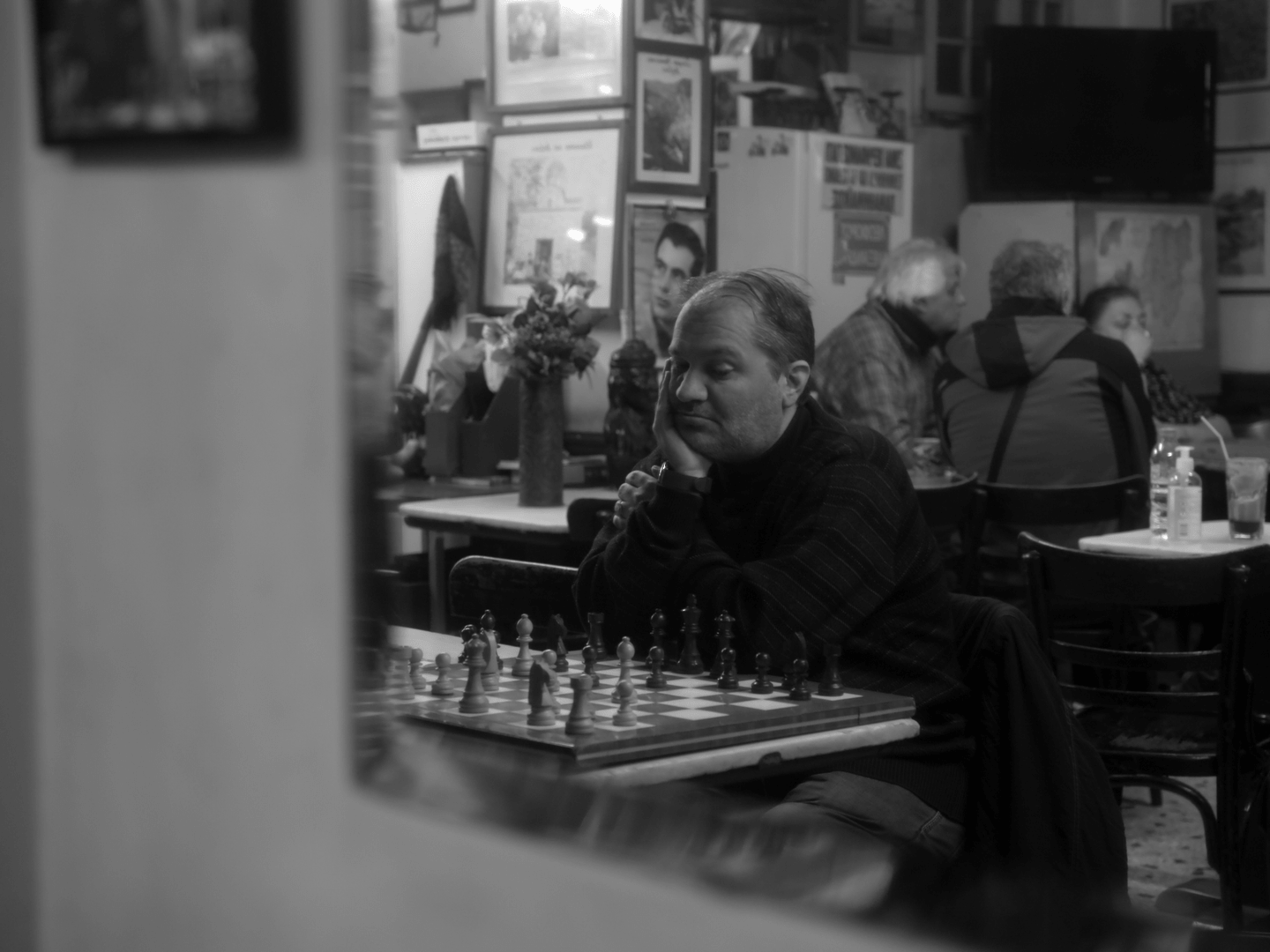 Πότε ασπρόμαυρο, σαν τα πιόνια της σκακιέρας, πότε γυρισμένο σε super 8 –το φίλτρο των αναμνήσεών μας–, αυτό το ατόφια «τζαρμουσικό» ντοκιμαντέρ για το ιστορικό σκακιστικό καφενείο στη συνδρομή της Μαυρομιχάλη με τη Σόλωνος συλλαμβάνει την ατμόσφαιρα του χώρου και μεταδίδει την αίσθηση της κοινότητας εντός του, συλλέγοντας προσωπικές μαρτυρίες, φυλακίζοντας στα κάδρα του πρόσωπα που θα συναντούσες στο «Μπαρ το Ναυάγιο» της Αρλέτας και αποκαλύπτοντας μικρές ιστορίες ανθρώπων που πέρασαν από τα καθίσματα του «Πανελληνίου», ζωντανών και πεθαμένων. Και το ίδιο το καφενείο, άλλωστε, δεν είναι τίποτε άλλο παρά μια μικρή, ζωντανή ιστορία των Αθηνών, από εκείνες που, αν κάποτε εκλείψουν, θα πάρουν και την πόλη μαζί τους. — Γιάννης Βασιλείου