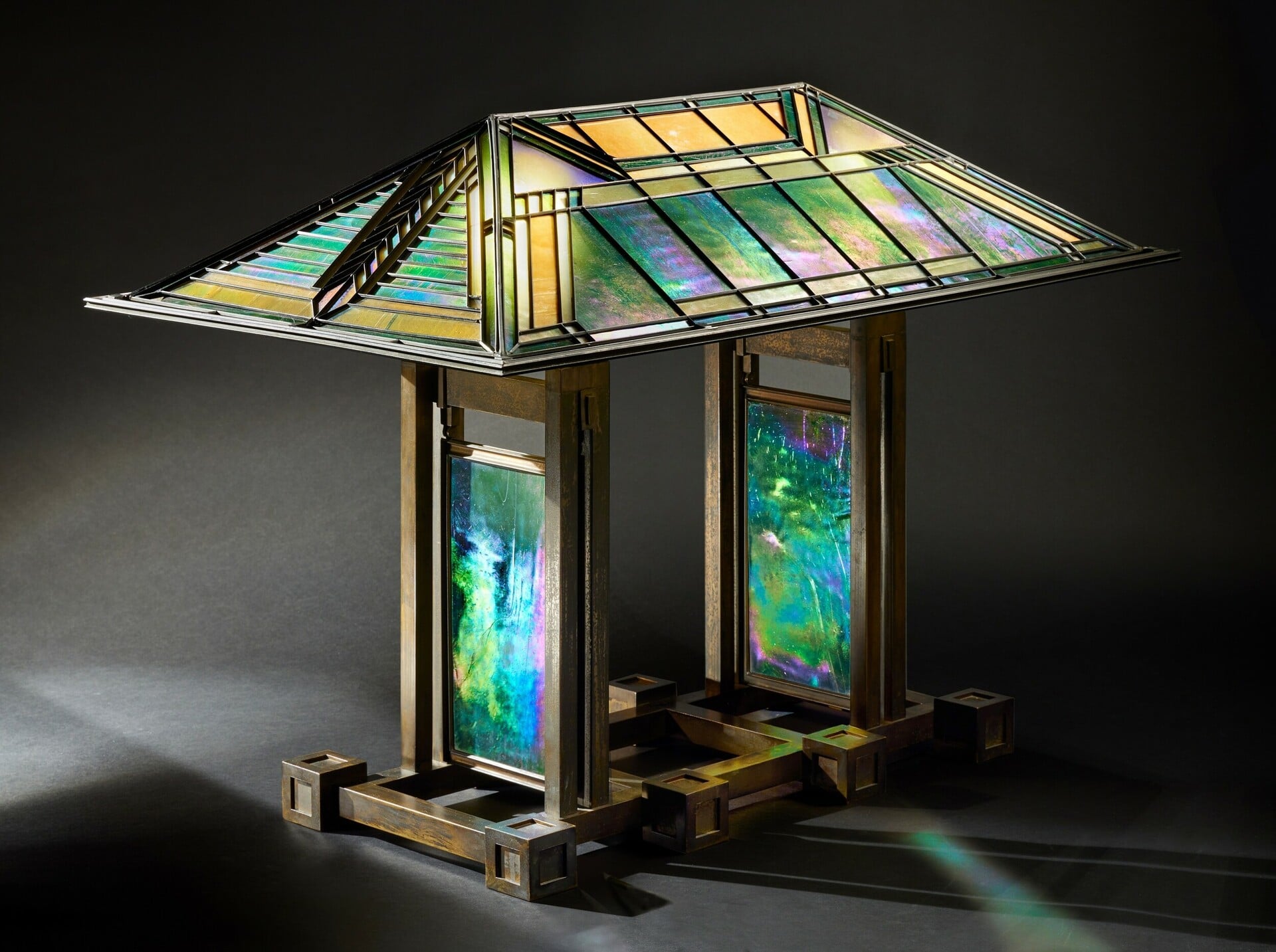 Το συγκεκριμένο φωτιστικό, με πολύχρωμο art glass και αυστηρή γεωμετρία, δεν προοριζόταν να διακοσμήσει έναν χώρο. Προοριζόταν να ανήκει σε αυτόν. Γι’ αυτό και η τιμή του δεν αντικατοπτρίζει υλικά ή τεχνική μόνο, αλλά ιστορία, σπανιότητα και ιδέα. Το φωτιστικό λειτουργεί ως μικρογραφία της φιλοσοφίας του Ράιτ: φως που δεν επιβάλλεται αλλά ενσωματώνεται στην αρχιτεκτονική εμπειρία.