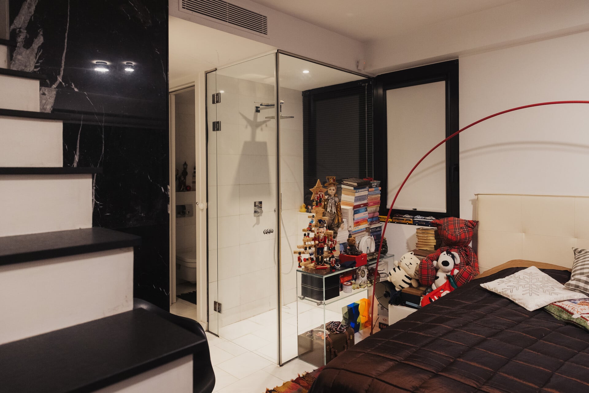 Είναι «κοινωνικό» σπίτι; Του αρέσει να μαγειρεύει και έρχονται συχνά φίλοι. «Κάνουμε και Πρωτοχρονιά εδώ, σε μένα, και είναι φανταστικά γιατί φαίνονται όλα τα πυροτεχνήματα της πόλης». Η τραπεζαρία του είναι καμουφλαρισμένη∙ υπάρχει ένα τραπέζι που μοιάζει μαγικό γιατί έχει ένα μοχλό και γίνεται ό,τι θες. Κι αν δεν το θες, εξαφανίζεται. Τώρα δεν μπορεί να μου το δείξει γιατί είναι το δέντρο στολισμένο.
