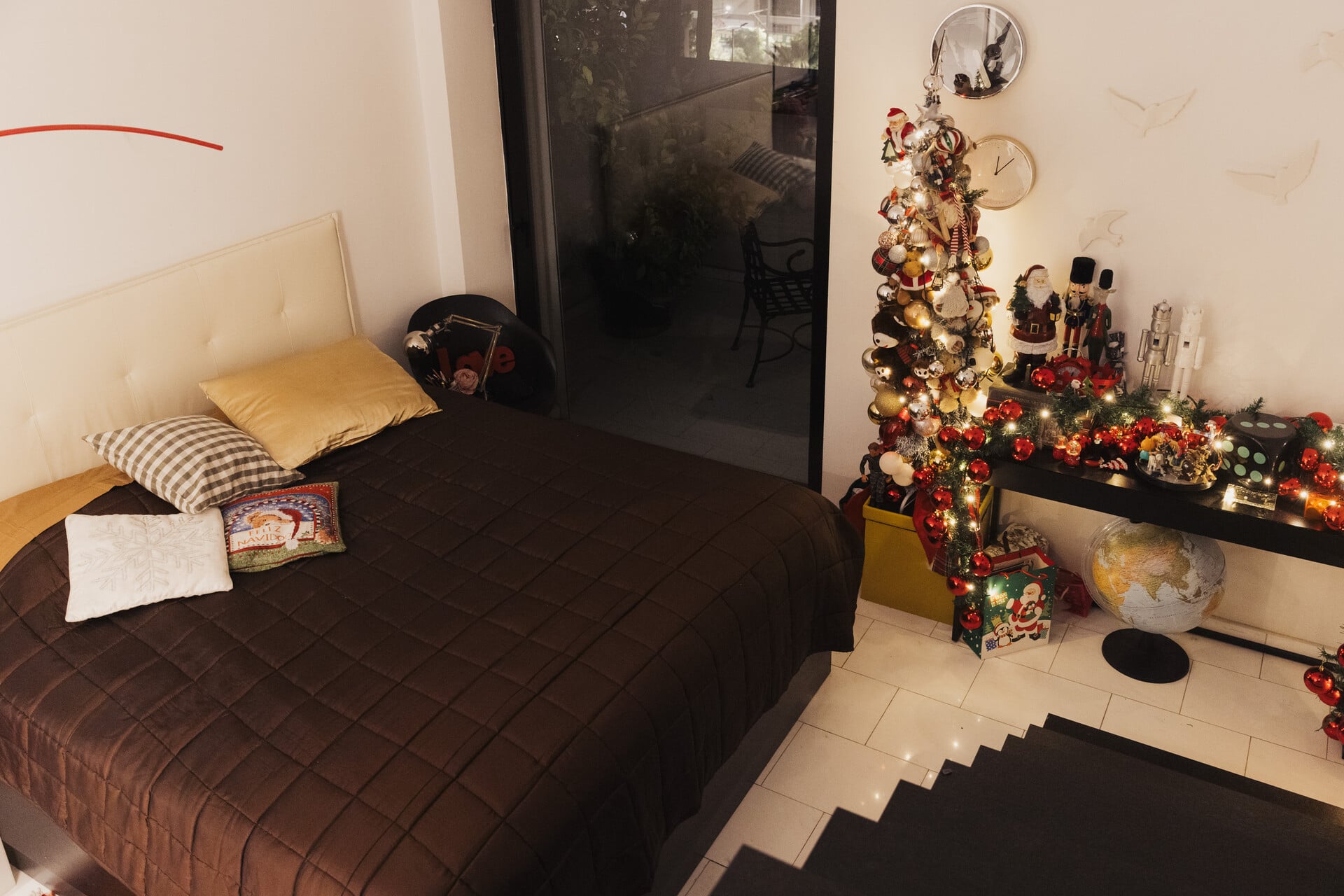 «Πώς ξεκίνησε όλη αυτή η χριστουγεννιάτικη πανδαισία με τα εκατοντάδες στολίδια;» Σε όλη του τη ζωή δεν θυμάται ούτε μία φορά να μην έχει στολίσει δέντρο. Τα τελευταία χρόνια τού παίρνει τρεις μέρες να στολίσει, με πολλή κούραση, και μετά είναι άθλος να τα μαζέψεις πάλι. Θέλουν οργάνωση και η αποθήκευση είναι ολόκληρη διαδικασία. Τον ρωτάω πόσα δέντρα έχει. Πέντε μεγάλα, πάνω από δύο μέτρα, και αρκετά πιο μικρά. Όσο για τα στολίδια, ούτε που ξέρει τον αριθμό τους.