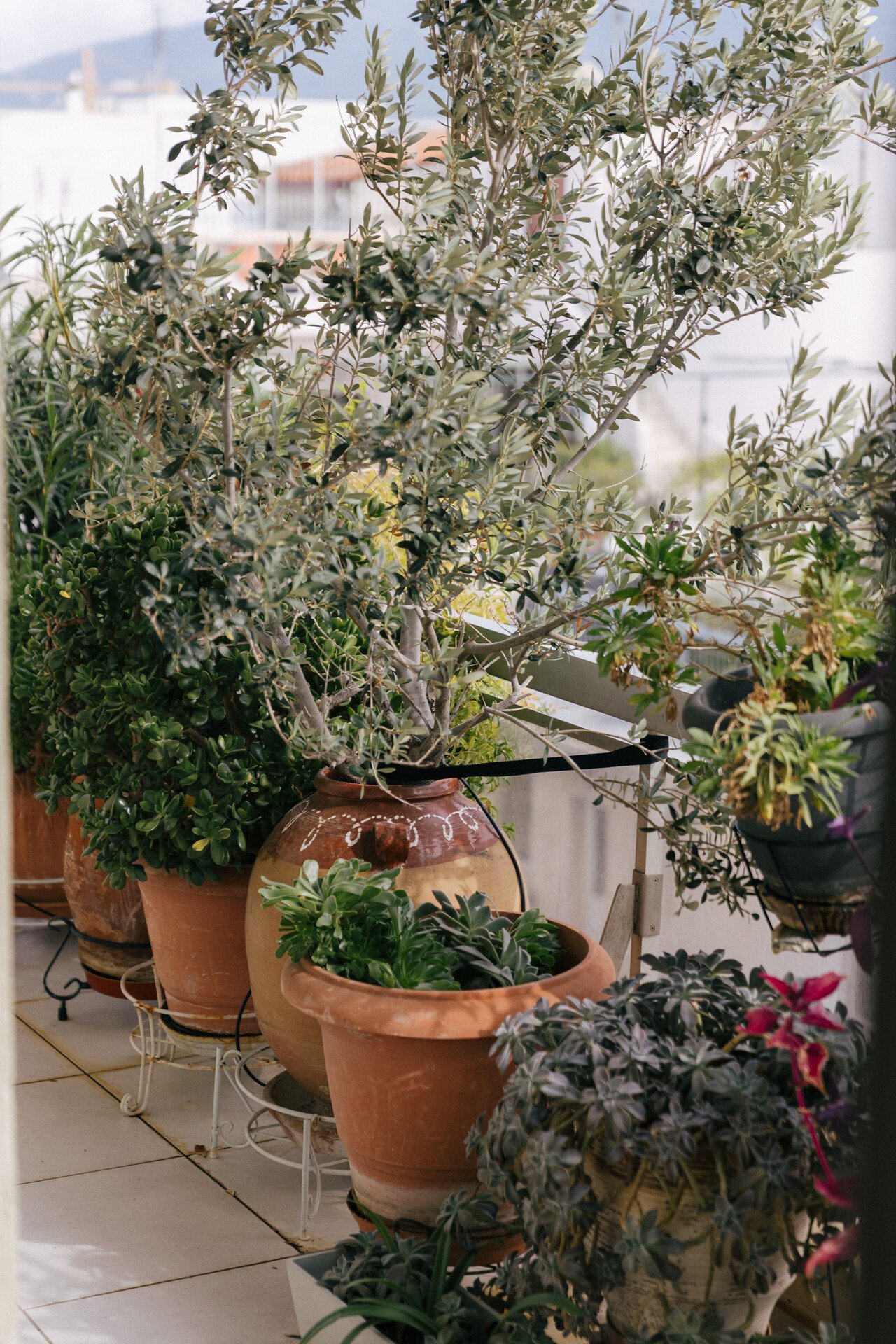 Της αρέσει να καθαρίζει τα ξερά φύλλα, να τους ρίχνει λίπασμα. Τη ρωτάω πώς έμαθε κηπουρική. «Απ’ τη μαμά μου, που ’ναι μεγάλη κηπουρός. Μετά τα παρακολουθώ εντατικά, πώς προσαρμόζονται στον χώρο. Τα ίδια τα φυτά, αν τα παρατηρείς, σε μαθαίνουν», μου λέει. Ό,τι πάει καλά το κλωνοποιεί. Της αρέσει να κάθεται με τις ώρες έξω στο μπαλκόνι, και χειμώνα και καλοκαίρι. «Έχω ρίζες που είναι από το πολυαγαπημένο μου Πήλιο. Έχω την μπουκαμβίλια της γιαγιάς μου, που ακόμα ζει και μεγαλώνει, και την ελιά που μου χάρισε η μητέρα μου όταν ενηλικιώθηκα και είναι σαν να είμαστε φίλες και να μεγαλώνουμε μαζί», λέει.