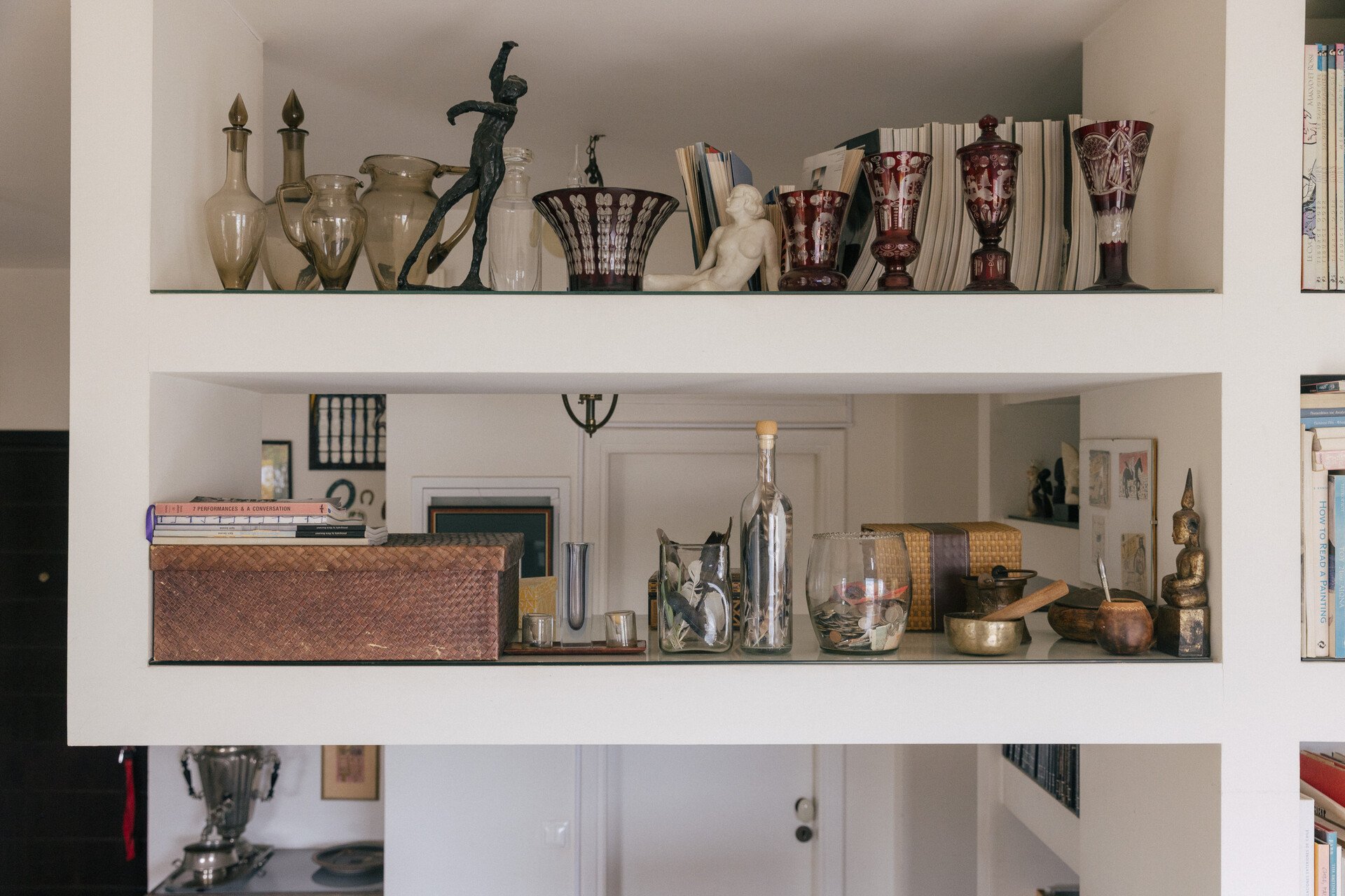 Το διαμέρισμά της έχει ένα αστικό allure, είναι γεμάτο από τους δικούς της προσωπικούς θησαυρούς, όμως τίποτα δεν είναι στημένο. Εκεί που πάει η διακοσμηση να γίνει στιβαρή, κάτι παιχνιδιάρικο αλλάζει τη διάθεση. Η Μαρία έχει πετύχει ένα εξαιρετικό μέτρημα που κάνει το σπίτι να αποπνέει ζεστασιά και ελευθερία. Δεν έχει ακολουθήσει κανόνες, μόνο το ένστικτό της.