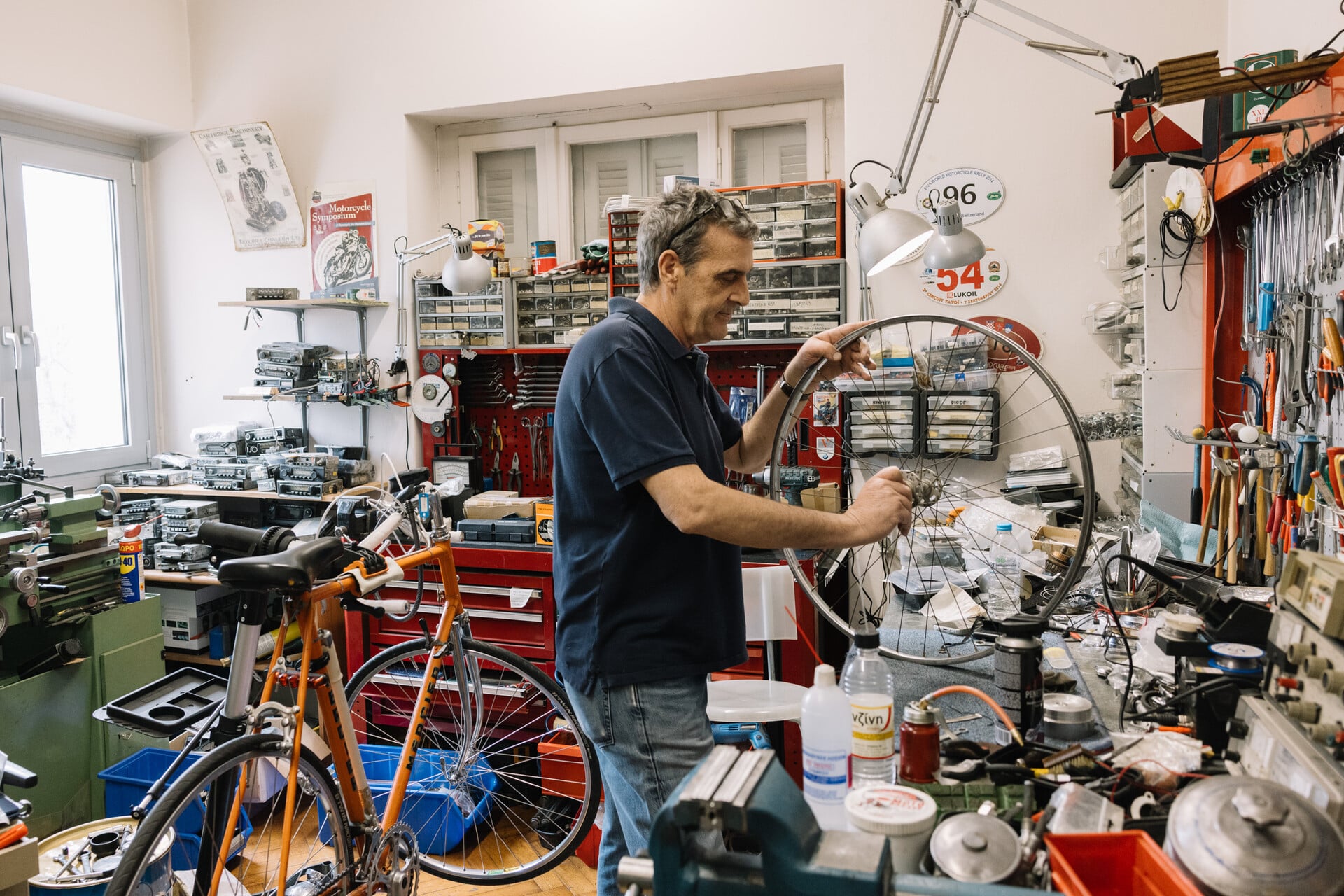 Ο Τάσος επισκευάζει παλιές μηχανές με πολύ μεράκι, και έχει πάει το χόμπι του σε άλλο επίπεδο. Φωτ.: Πάρις Ταβιτιάν/ LIFO