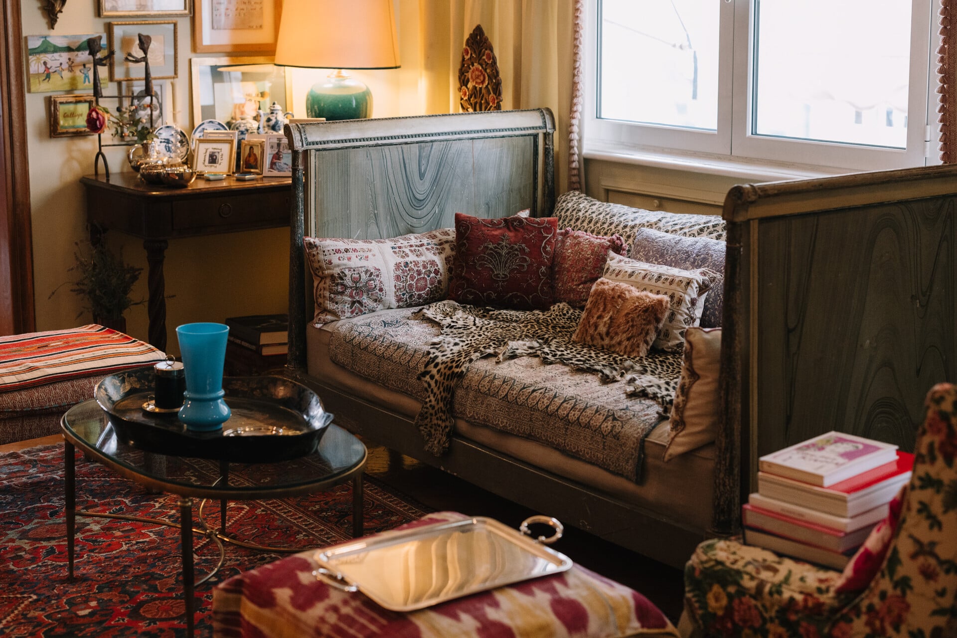 Η Calliope μούσα όνομα και πράγμα. Το καλό της γούστο και το ένστικτό της φαίνονται στον τρόπο που ντύνεται αλλά και στο διαμέρισμά της. Όλα μοιάζουν προέκταση της ίδιας: χαλιά από διαφορετικά μήκη και πλάτη, vintage έπιπλα που συνυπάρχουν με συναισθηματικής αξίας αντικείμενα, καναπέδες λεοπάρ με λουλουδάτα υφάσματα σκεπασμένα με tribal καλύμματα, χαμηλά τραπέζια γεμάτα βιβλία φωτογραφίας, κεραμικά και μικρές συλλογές που μοιάζουν να έχουν συγκεντρωθεί χωρίς σχέδιο, αλλά τελικά δημιουργούν μια απόλυτα προσωπική ισορροπία.