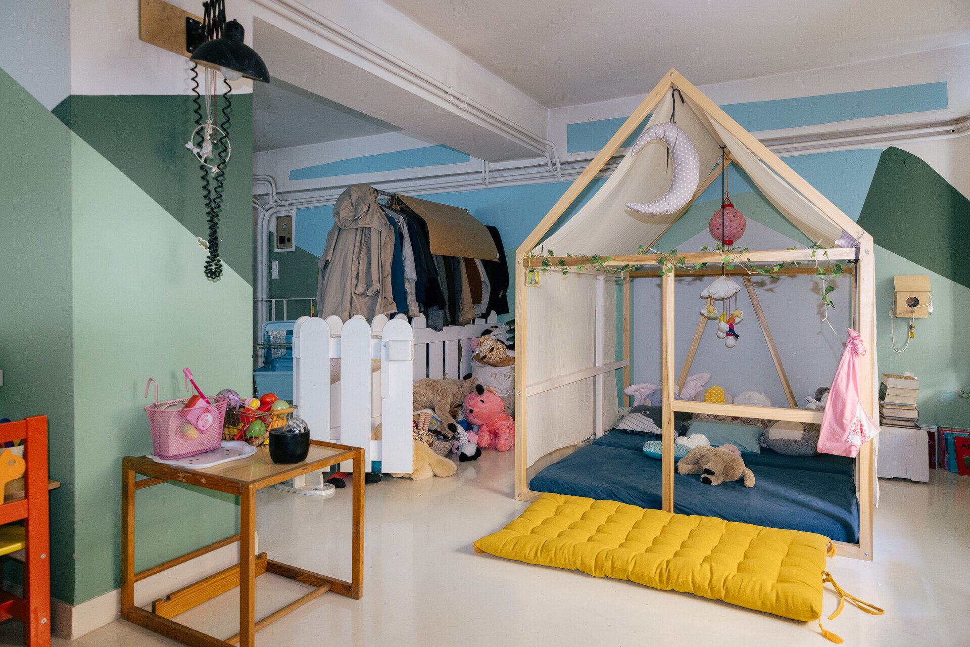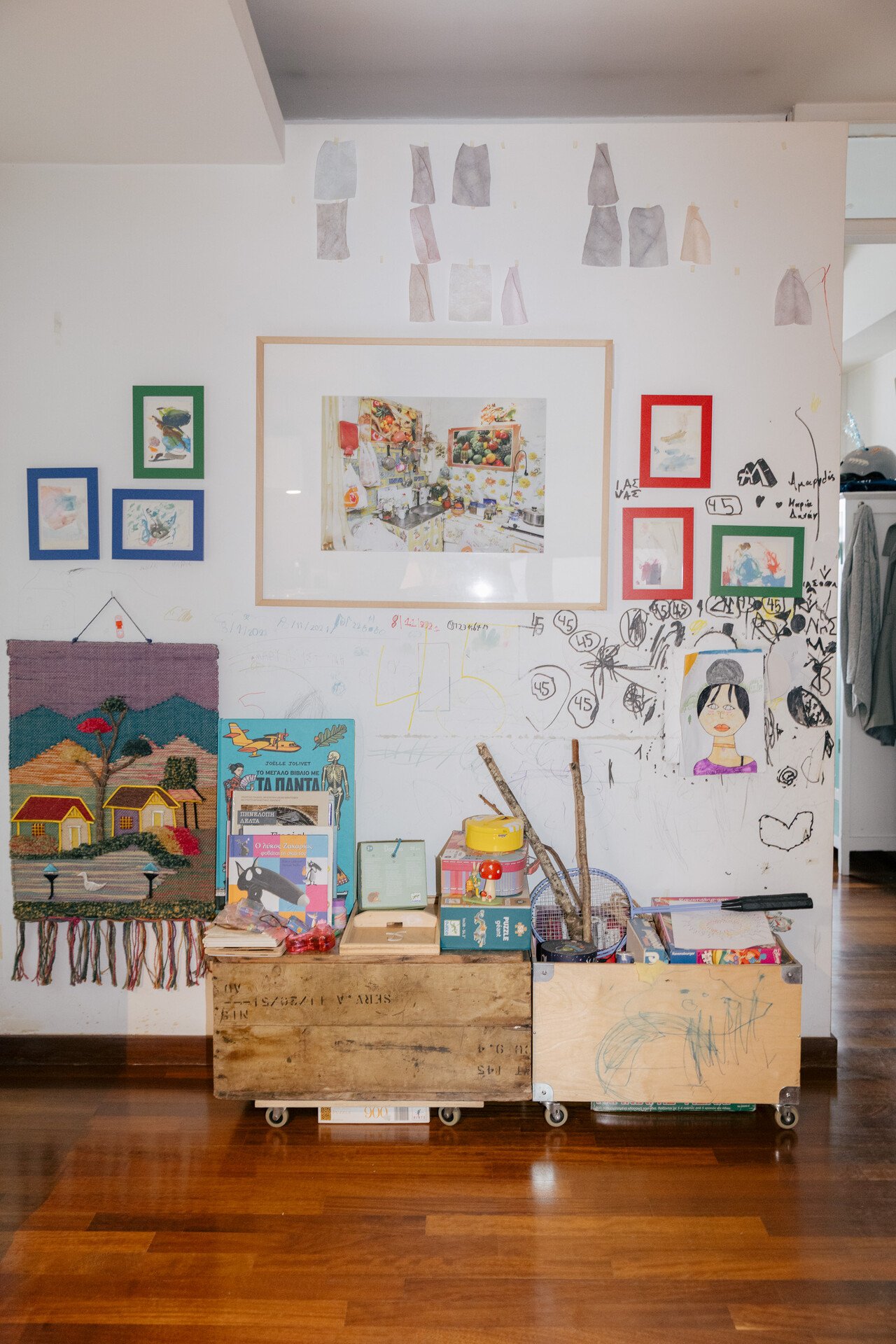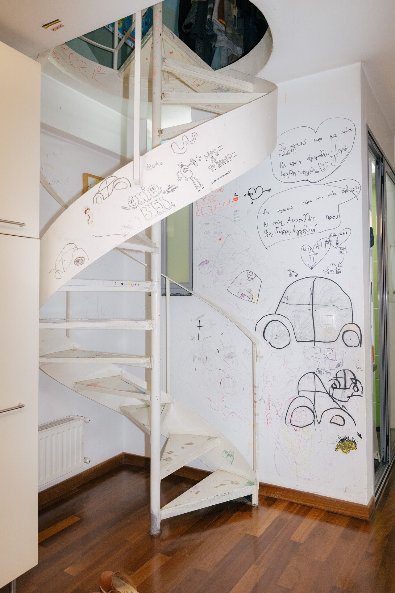 Κάποτε ήρθε ένας κολλητός της για λίγες μέρες, επειδή χώρισε, και έμεινε τρία χρόνια. «Οι περισσότεροι δεν τηλεφωνούν καν», παρατηρεί. «Άλλοι έχουν και κλειδιά». Της αρέσουν τα μεγάλα τραπέζια, τα πάρτι, το μοίρασμα. Παρατηρώ ότι έχει και παιχνίδια στο καθιστικό. Μου εξηγεί ότι δεν θέλει τα παιδιά να είναι αποκλεισμένα σε ένα δωμάτιο, της αρέσει η συμμετοχή, το μαζί, η συνύπαρξη. Έχει και παιχνίδια παλιά της γιαγιάς της που την αγαπούσε πολύ, λέει και μου τα δείχνει.