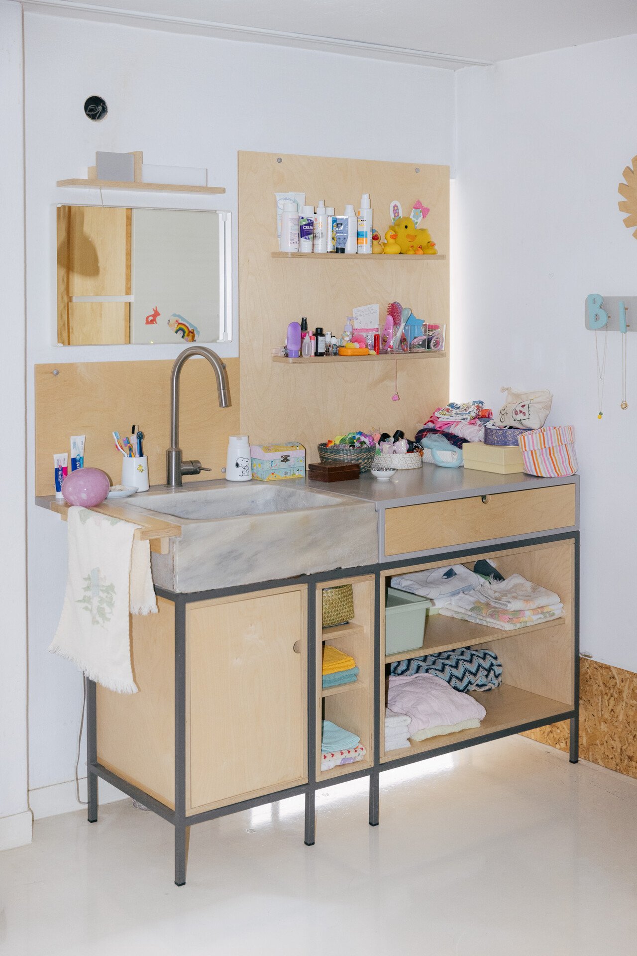 «Το είχε πολύ και με το interior. Είχε μεράκι και πρόσεξε και την πιο μικρή λεπτομέρεια», λέει και μου δείχνει το «έξυπνο» μπάνιο στον κάτω όροφο, όπου μπορεί κάποιος να κάνει ντους και κάποιος άλλος να χρησιμοποιεί την τουαλέτα με πολύ πρακτικό τρόπο. Μετά από χρόνια όμως χώρισαν και αργότερα η Ήρα γνώρισε τον Γιώργο, που σχεδιάζει και κατασκευάζει έπιπλα. «Βλέπω, οι σύντροφοί σου το έχουν όλοι με το interior», αστειεύομαι. «Μα με αυτό το κριτήριο τους επιλέγω», λέει γελώντας.