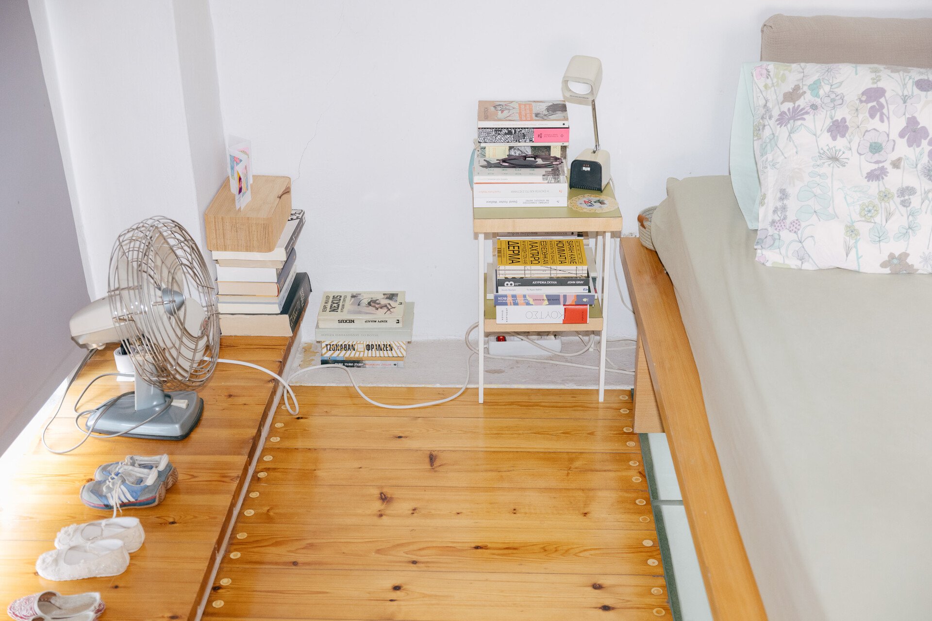 Τη ρωτάω για διάφορα έπιπλα που μου κάνουν εντύπωση. Βρίσκει έπιπλα παντού: κάποια παρατημένα στα σκουπίδια, κάποια της τα δίνουν γνωστοί της που δεν τα θέλουν. Η εντυπωσιακή τραπεζαρία, μαθαίνω, είναι δανέζικη. Τη βρήκε σε μια μετακόμιση – την έδιναν για τριακόσια ευρώ. Βγάζω επιφώνημα ενθουσιασμού.