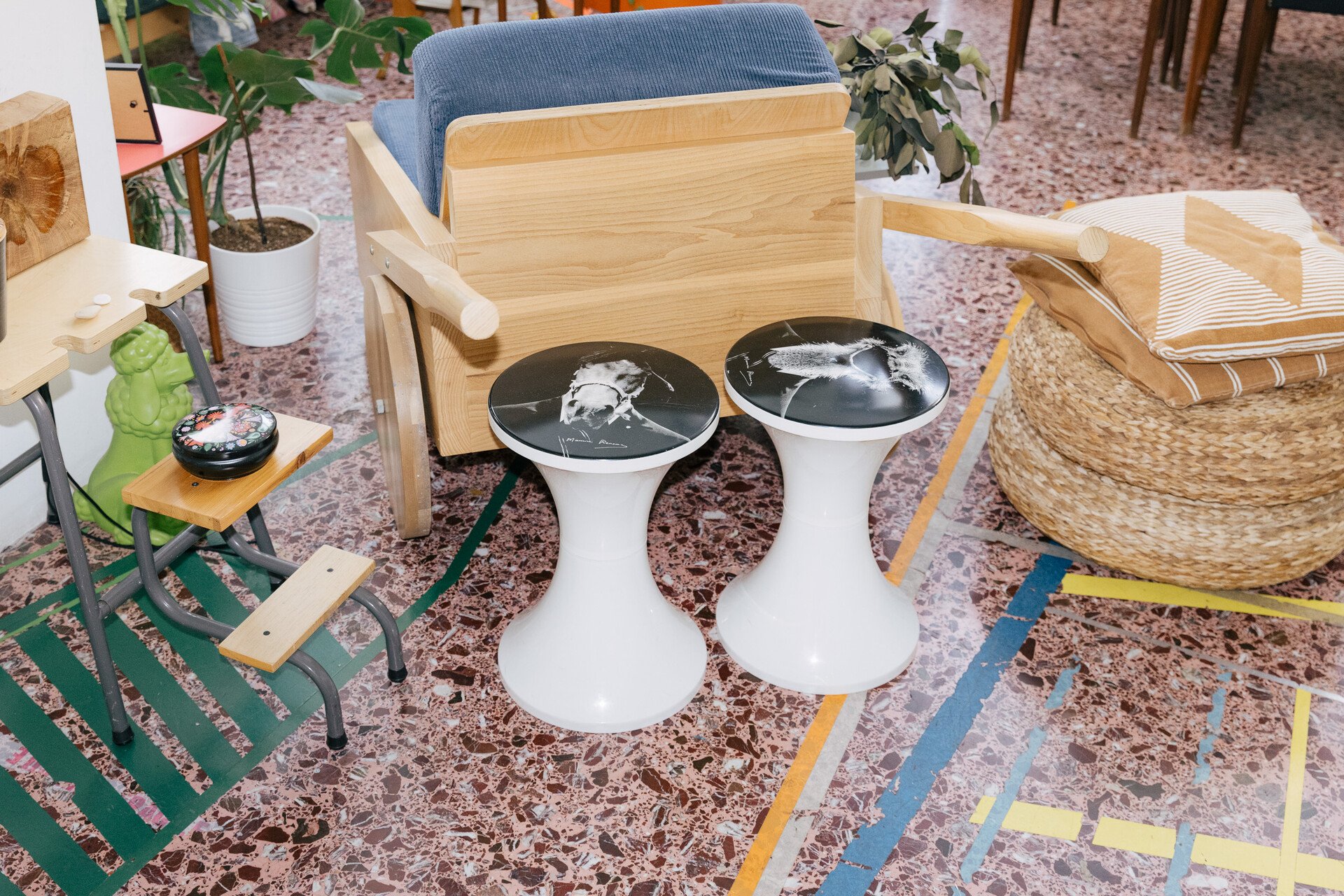 Τη ρωτάω για το «Three dots», τον χώρο που δημιούργησαν εκείνη, ο Γιάννης και ο Γιώργος που κατασκευάζει τα έπιπλα. Ο Γιάννης ήταν συμφοιτητής της Ήρας στη Σχολή Καλών Τεχνών και έφτιαξαν αυτόν τον δημιουργικό χώρο με σκοπό να σχεδιάζουν έπιπλα και design αντικείμενα. Έχουν φτιάξει πολλά για το Μουσείο Μπενάκη, για μουσεία γενικά και για workshops. Τώρα άλλαξαν χώρο και έχουν σχεδιάσει μια καινούργια σειρά. Υπόσχομαι να τους επισκεφτώ γιατί θέλω οπωσδήποτε κάτι δικό τους. «Να, σαν αυτή την καρέκλα», της δείχνω μια καρέκλα που έχει φτιάξει ο Γιώργος.