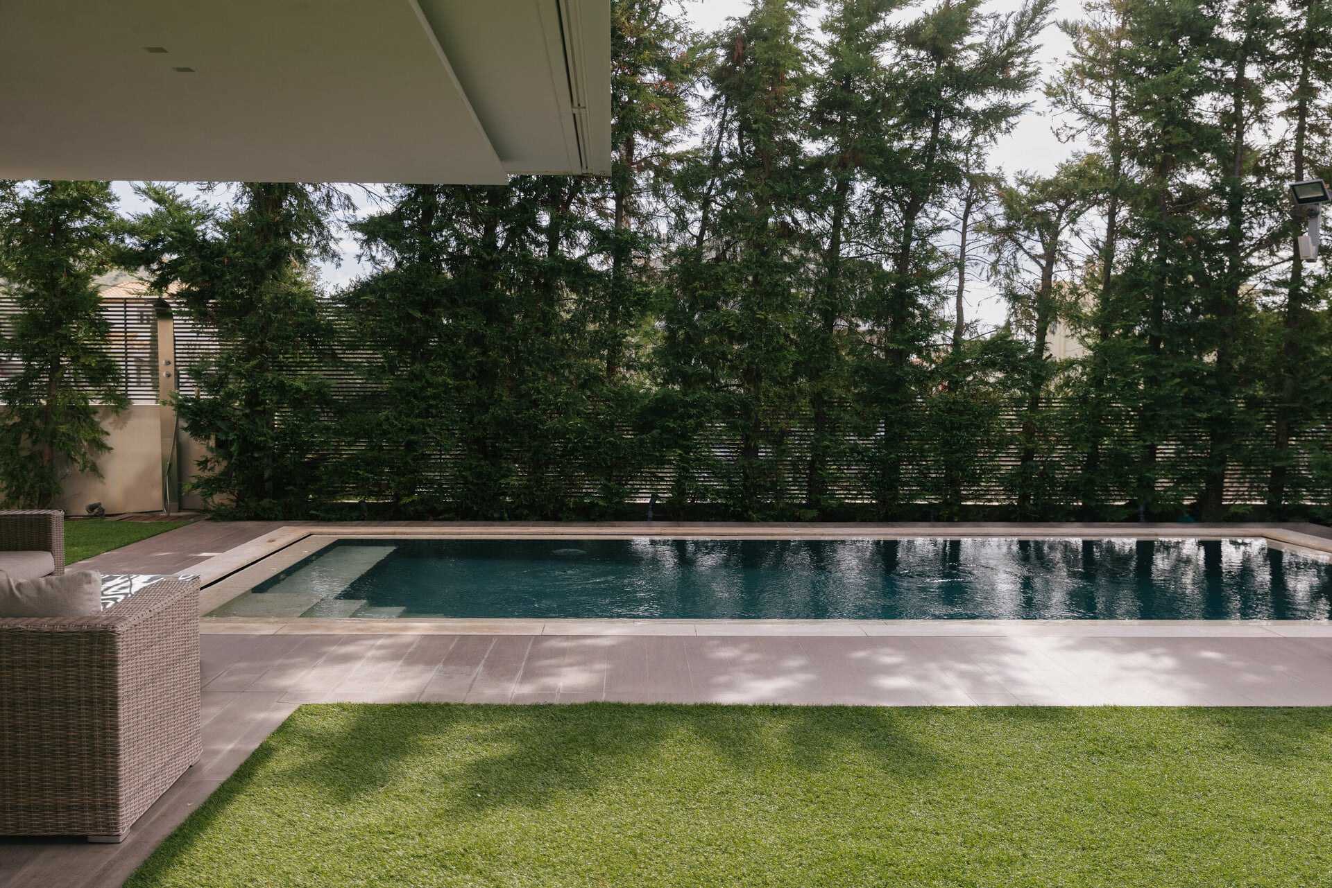 Η πισίνα είναι διακριτική – όχι ολυμπιακών διαστάσεων, αλλά ακριβώς όσο μεγάλη χρειάζεται. Φωτ.: Πάρις Ταβιτιάν/ LIFO